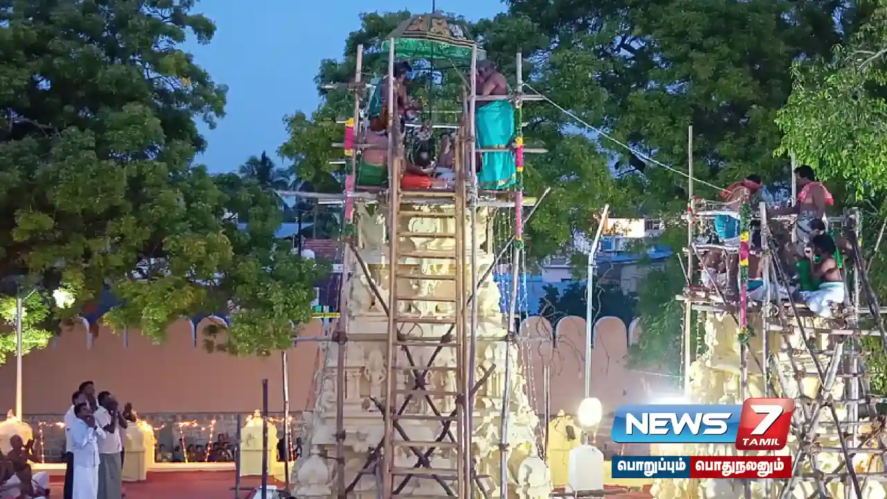 இதனிடையே கோயிலில் யாகசாலை பூஜைகள் நடைபெற்றது. தொடர்ந்து யாகசாலையில் மகா பூர்ணாஹுதி நடைபெற்று தீபாராதனை நடைபெற்றது. அதை தொடர்ந்து கும்பக்கலசங்களுக்கு சிறப்பு பூஜைகள் செய்யப்பட்டு கலசங்கள் விமான தளத்திற்கு எடுத்துச்செல்லப்பட்டது.