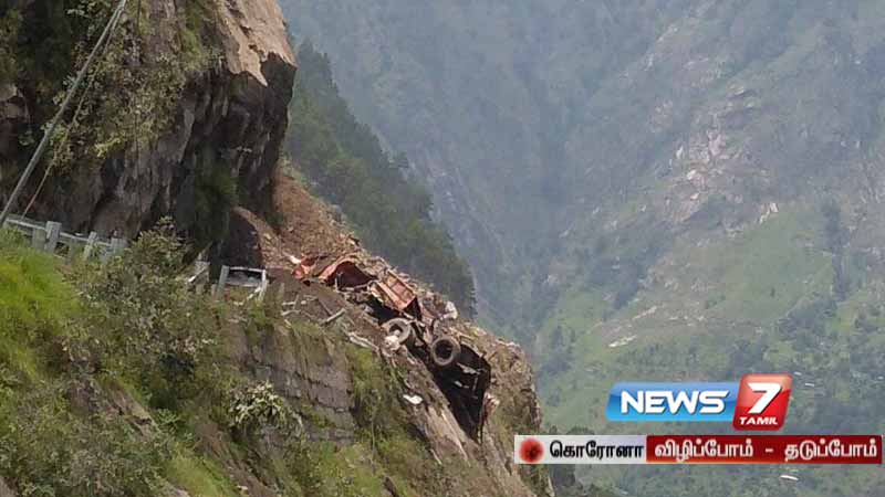 ரெக்காங் பியோ-வில் இருந்து சிம்லா சென்றுகொண்டிருந்த அந்த பேருந்து, ராம்பூர்-ஜூரி பகுதியில் உள்ள மலைப்பாங்கான பகுதியில் வந்தபோது, திடீரென நிலச்சரிவு ஏற்பட்டது. மலைப்பகுதியில் உள்ள பாறைகள் உருண்டு விழுந்தன. சில பாறைகள் சென்று கொண்டிருந்த பேருந்து மற்றும் கார்கள் மீது விழுந்தன. மண்சரிவு ஏற்பட்டு சாலை துண்டானது.