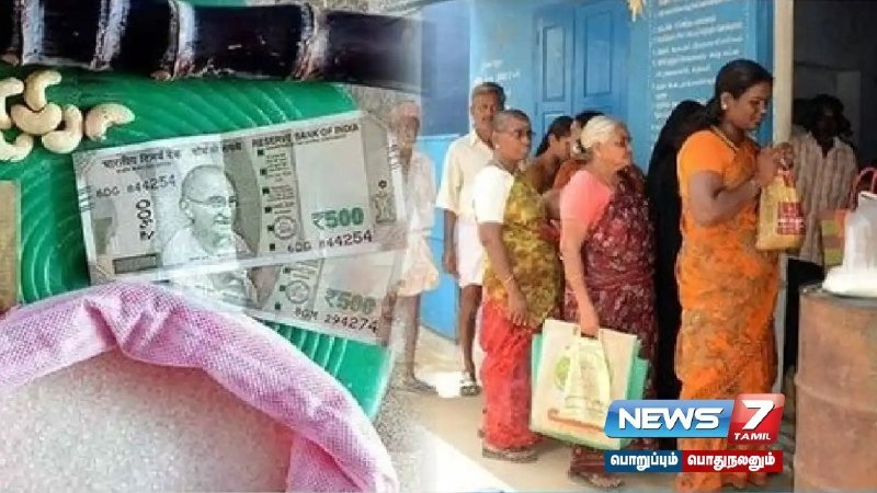 அட்டைதார்களுக்கும் 1000 ரூபாய் ரொக்கத்துடன் கூடிய 4 பொருட்கள் அடங்கிய
