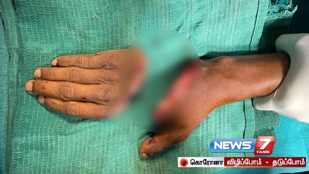 இதையடுத்து, துரிதமாக செயல்பட்ட அரசு மருத்துவர்கள் மிகவும் சிக்கலான அறுவை சிகிச்சையை மேற்கொண்டு கணேஷின் துண்டான கையை உடலுடன் இணைத்தனர். அப்போது, எலும்புகள், தசைகள், நரம்புகள் மற்றும் ரத்தக் குழாய்களும் இணைக்கப்பட்டன.