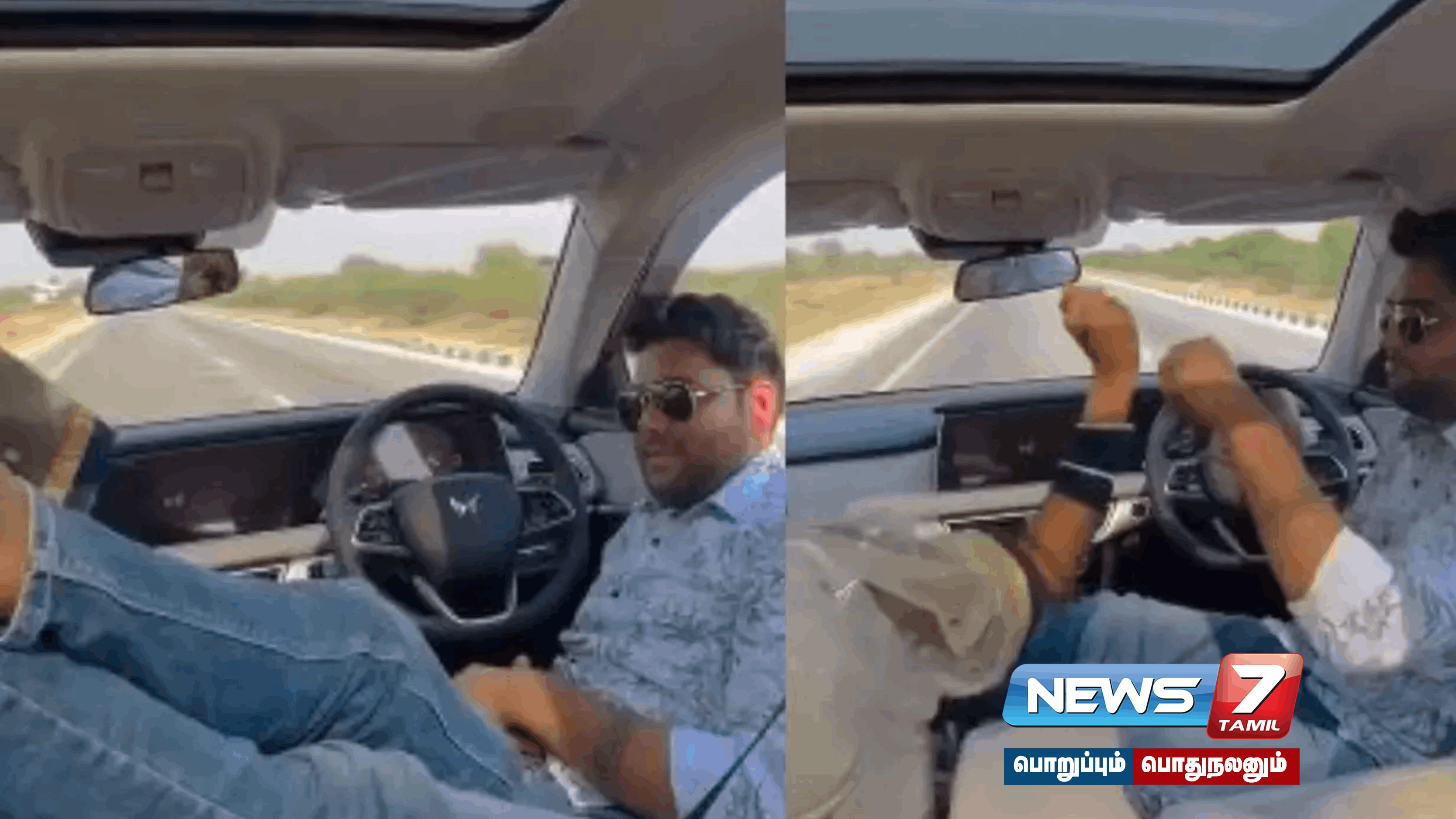 அந்த இளைஞர் ஸ்டீயரிங்கை விடுத்து காலை சீட்டின் அருகில் வைத்துக்கொண்டு ரீல் செய்துள்ளார். அவரது மனைவி அந்த சீட்டில் அமர்ந்திருக்கிறார். டிரைவர் சீட்டில் அமர்ந்திருக்கும் அந்த இளைஞர் தனது மனைவி பக்கம் திரும்பி பேசுவது போல அந்த வீடியோ அமைந்திருக்கிறது. அப்போது ஸ்டீயரிங்க்லிருந்து முழுவதும் கையை எடுத்துவிட்டார். இந்த வீடியோ தற்போது வைரலாகியுள்ளது. நெட்டிசன்கள் இந்த வீடியோவில் உள்ள நபரை கண்டித்து வருகின்றனர்.