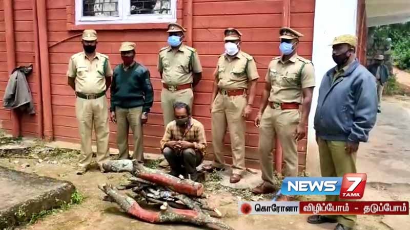 குன்னூரில் சந்தனமரங்களை வெட்டி கடத்திய நபரை வனத்துறையினரின் கைது செய்தனர்.