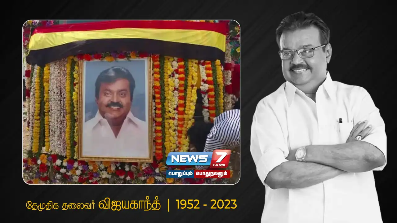 தேமுதிக தலைவர் விஜயகாந்த் (71) நேற்று முன்தினம் உயிரிழந்தார். இதனைத் தொடர்ந்து சாலிகிராமத்தில் உள்ள அவரது வீட்டில் அஞ்சலிக்காக அவரது உடல் வைக்கப்பட்டது. இதன் பின் கோயம்பேட்டில் உள்ள தேமுதிக தலைமை அலுவலகத்திற்கு விஜயகாந்தின் உடல் கொண்டு செல்லப்பட்டு அங்கு பொதுமக்கள் அஞ்சலிக்காக வைக்கப்பட்டது. அங்கு விஜயகாந்த் உடலுக்கு பொதுமக்கள், அரசியல் கட்சி தலைவர்கள் மற்றும் திரைப் பிரபலங்கள் நேரில் சென்று அஞ்சலி செலுத்தினர்.