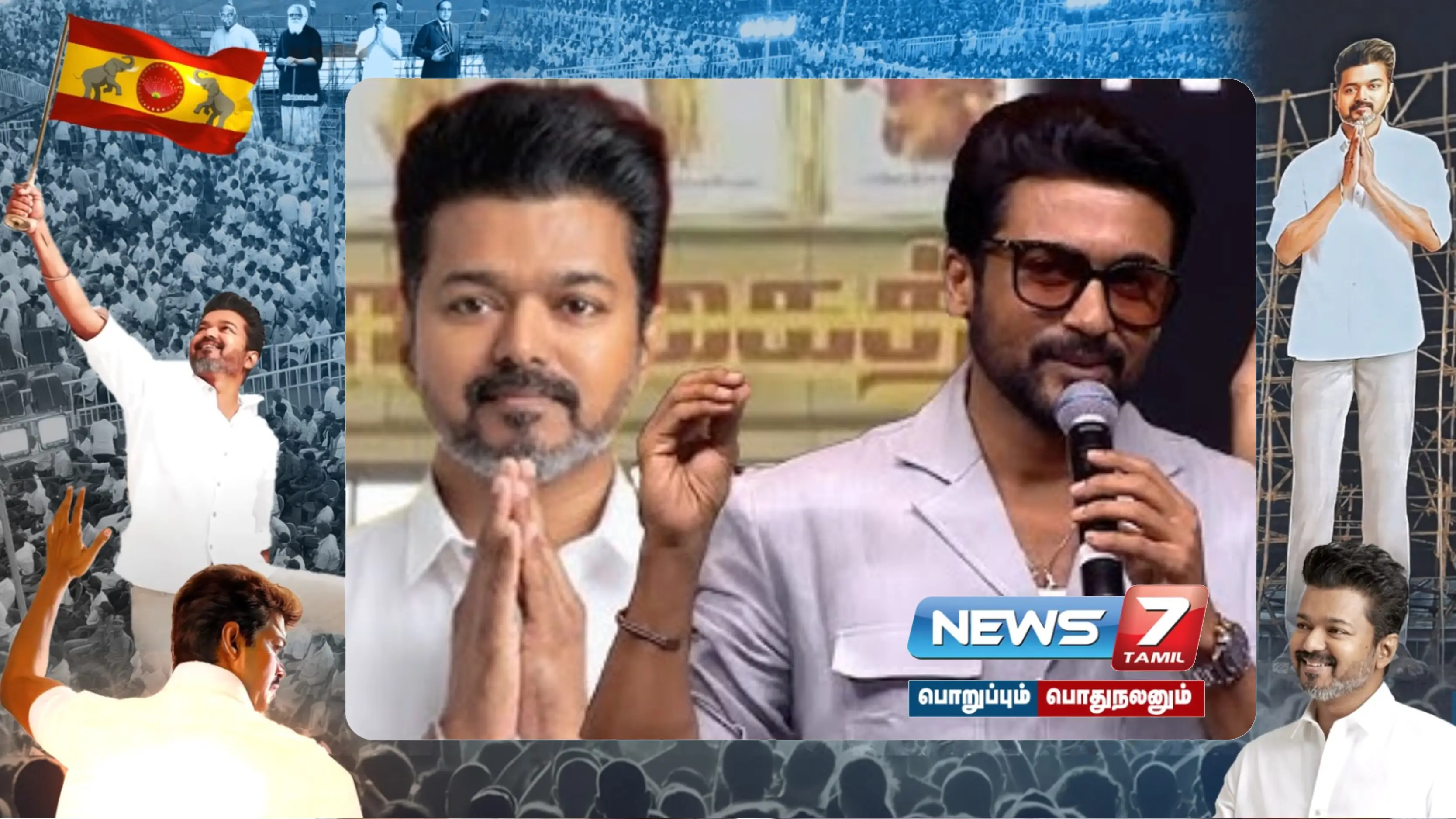 சிறுத்தை சிவா இயக்கத்தில் சூர்யா நடித்துள்ள ‘கங்குவா’ திரைப்படத்தின் இசை வெளியீட்டு விழா சென்னையில் உள்ள நேரு உள்விளையாட்டு அரங்கில் சனிக்கிழமை நடைபெற்றது. இதில் பேசிய சூர்யா, விஜய்யின் பெயரை குறிப்பிடாமல் ‘நண்பரின் புதிய பாதை நல் வரவாக அமையட்டும்’ என தெரிவித்தார்.