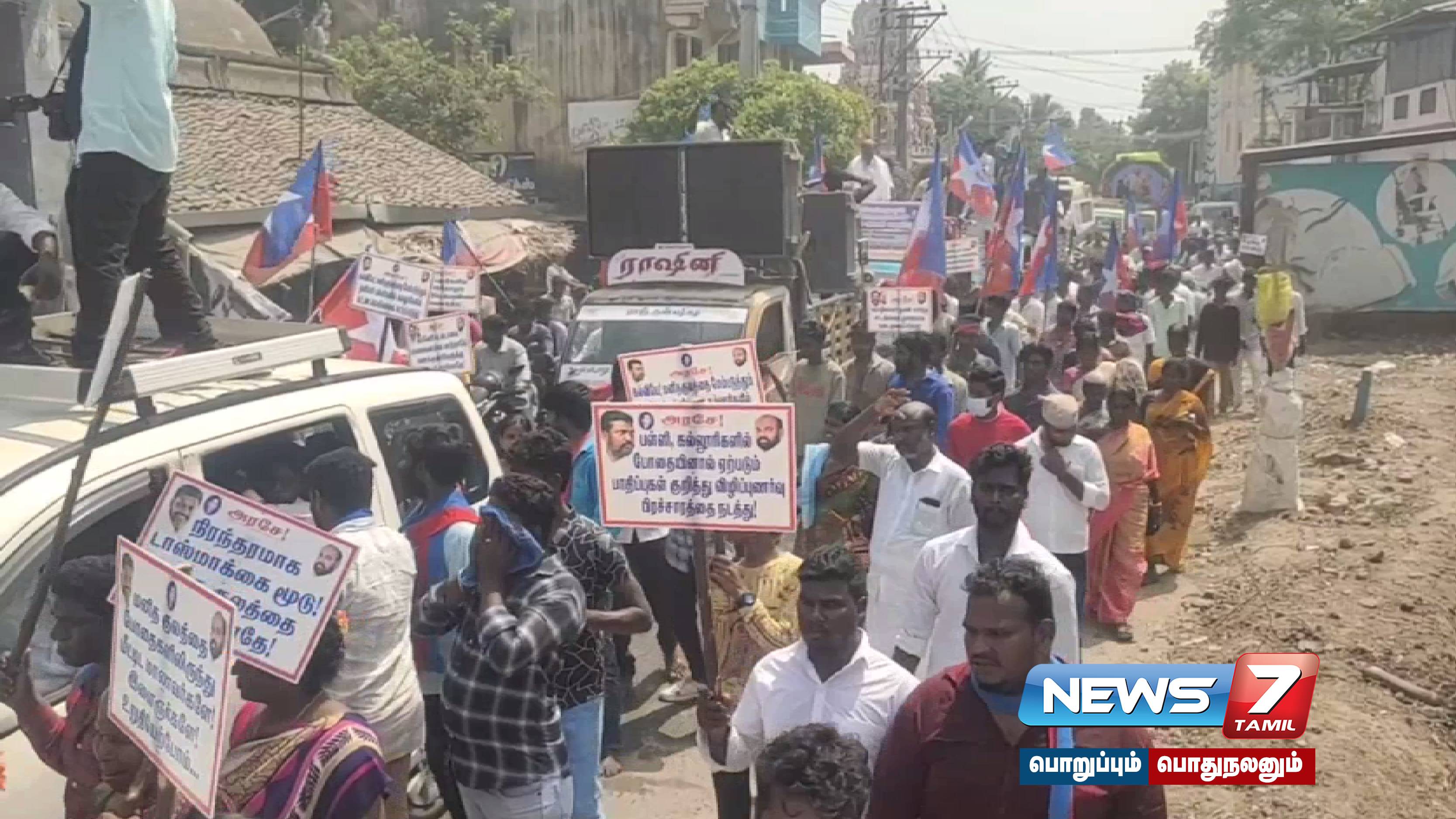 கட்சியின் முன்னாள் மாவட்ட செயலாளர் மா.ஈழவளவன் தலைமையில் நடைபெற்ற பேரணி நகரின் முக்கிய வீதிகளின் வழியாக சென்றது.