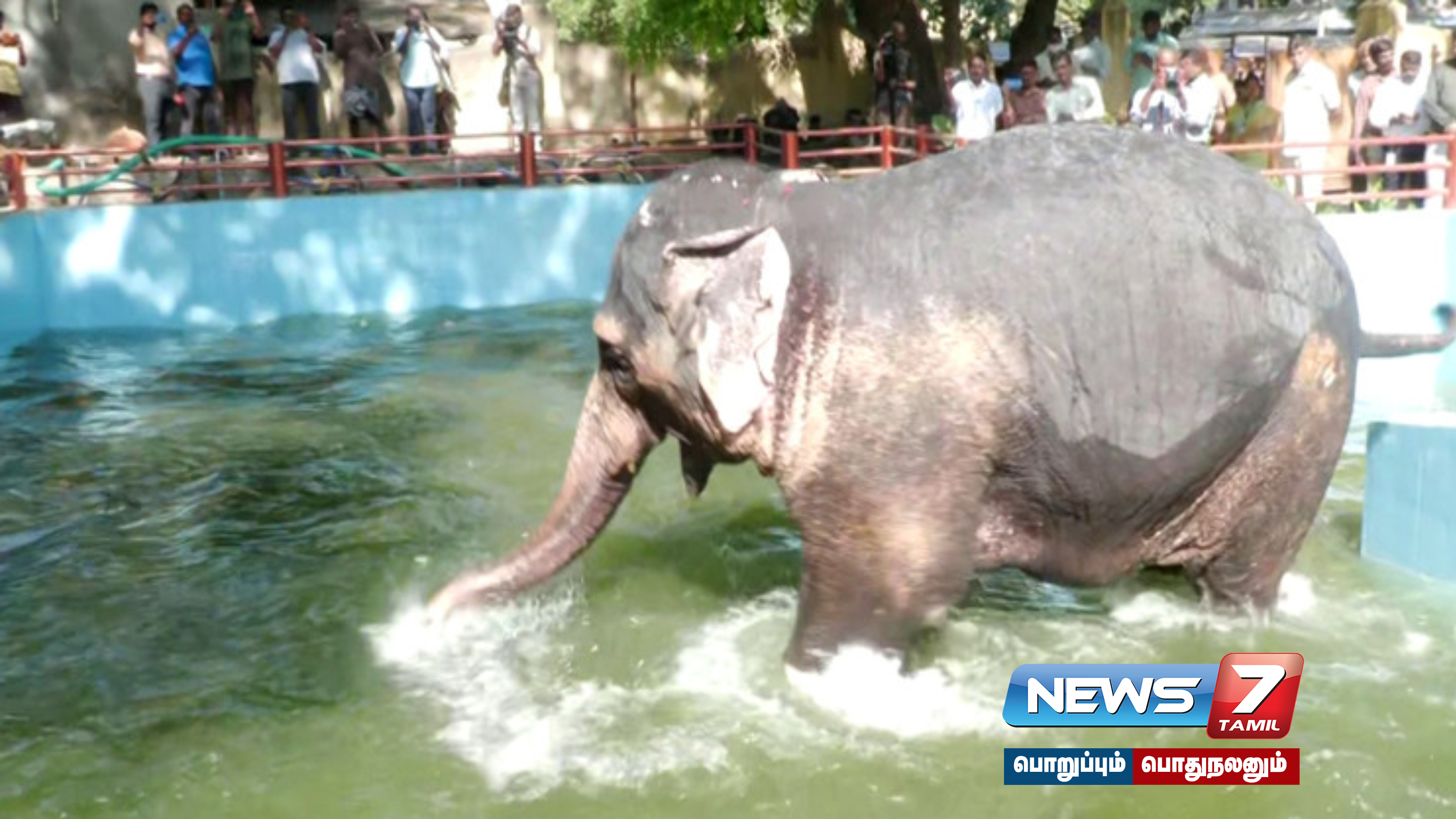 உலகப்புகழ் பெற்ற மதுரை மீனாட்சி அம்மன் கோவிலில் உள்ள கோவில் யானை பார்வதிக்கு கண்ணில் வெண்புரை ஏற்பட்டு பார்வை குறைபாடு ஏற்பட்டது. இதையடுத்து, கால்நடை மருத்துவ நிபுணர்களால் யானைக்கு சிகிச்சை வழங்கப்பட்டது. சிகிச்சையில் முன்னேற்றம் ஏற்பட்ட நிலையில், யானையின் மன அழுத்தத்தை போக்கும் விதமாக, குளித்து மகிழ்ந்து விளையாடும் வகையில், 23 லட்சத்து 50 ஆயிரம் ரூபாய் மதிப்பீட்டில் நீச்சல் குளம் அமைக்கப்பட்டது.