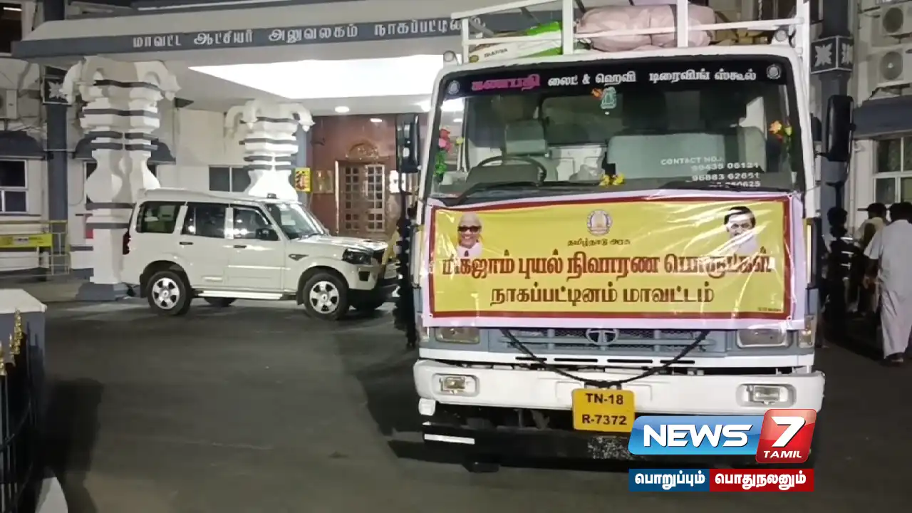 அவர்களால் வழங்கப்பட்ட 4.86 லட்ச ரூபாய் மதிப்பிலான அத்தியாவசிய நிவாரண பொருட்கள் ஏற்றி செல்லும் வாகனத்தை ஆட்சியர் ஜானி டாம் வர்கீஸ் கொடியத்து அனுப்பி வைத்தார். கடந்த 24 மணி நேரத்தில், ரூ.11 லட்சம் மதிப்புள்ள நிவாரண பொருட்கள் நாகை மாவட்ட ஆட்சியர் மூலம் அனுப்பப்பட்டுள்ளது.
