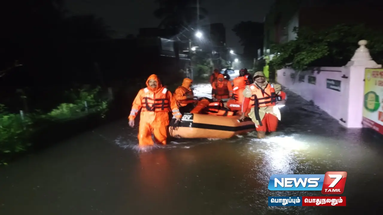 கொண்டிருக்கிறது. இதன் காரணமாக சென்னை மற்றும் புறநகர் பகுதிகளான தாம்பரம் மற்றும் அதன் சுற்றுவட்டார பகுதிகளில் பலத்த சூறை காற்றுடன் கன மழை பெய்து வருகிறது. தொடர்ந்து தாம்பரம் பகுதியில் 25 நபர்கள் கொண்ட பேரிடர் மீட்பு குழு முகாமிட்டிருந்தது.