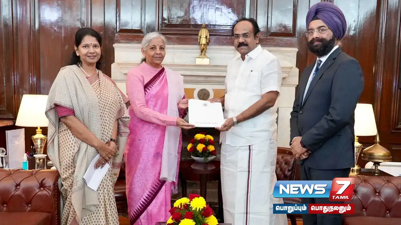 தமிழ்நாடு நிதியமைச்சர் தங்கம் தென்னரசு, நாடாளுமன்ற குழுத் தலைவர் கனிமொழி. தமிழ்நாடு அரசின் கூடுதல் தலைமைச் செயலாளர் ககன்தீப் சிங் பேடி ஆகியோர் புது டெல்லியில் இன்று மத்திய நிதியமைச்சர் நிர்மலா சீதாராமனை சந்தித்தனர். அப்போது அவர்கள், மகாத்மா காந்தி தேசிய ஊரக வேலை உறுதித் திட்டத்திற்கு மத்திய அரசு வழங்க வேண்டிய ரூ.1,056 கோடி நிதியினை உடனடியாக விடுவிக்க ஆவன செய்யுமாறு வலியுறுத்தினர்.