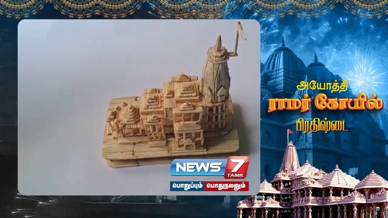 ராமர் கோயில் பிரதிஷ்டையை முன்னிட்டு தீக்குச்சிகளை வைத்து ராமர் கோயில் மாதிரியை ஒடிசா கலைஞர் அசத்தியுள்ளார்.
