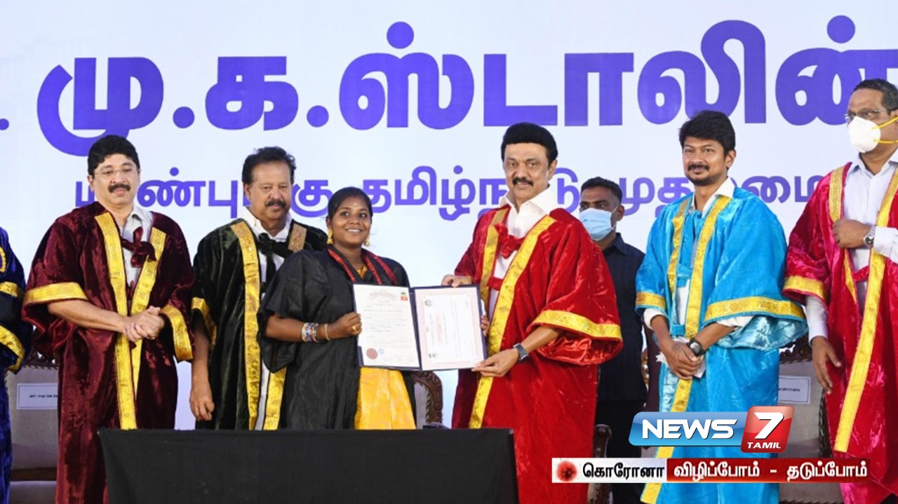 தொடர்ந்து பேசிய அவர், கல்வி பயில பணம் தடையாக இருக்கக்கூடாது. அனைவரும் படிக்க வேண்டும். அனைத்து வாய்ப்புகளையும் அனைவரும் பெற வேண்டும். படியுங்கள், பட்டம்பெறுங்கள், அதில் உயர்ந்த நிலையை அடையுங்கள். பொன்முடியை அறிவுமுடி என கலைஞர் கூறுவார். கல்லூரிப் பேராசிரியராக இருந்து பல்கலைக்கழக இணைவேந்தராக இருக்கிறார் என்றார்.