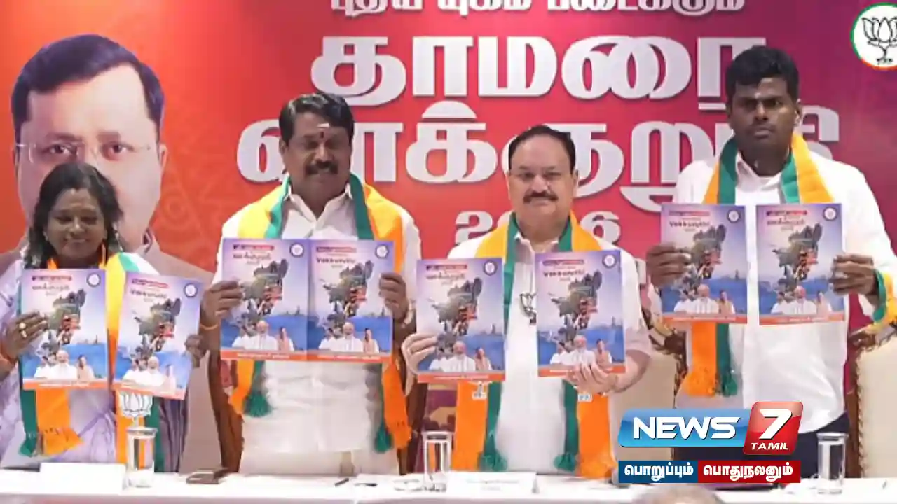 தமிழக சட்டமன்ற தேர்தல் வரும் 23ம் தேதி நடைபெறவுள்ளது. இதையொட்டி அரசியல் கட்சி தலைவர்கள் தீவிர பிரச்சரத்தில் ஈடுபட்டு வருகின்றனர். இந்த நிலையில் தேர்தலையொட்டி பாஜகவின் தேர்தல் அறிக்கை இன்று வெளியிடப்பட்டுள்ளது. சென்னை கிண்டியில் உள்ள தனியார் ஓட்டலில் நடைபெற்ற நிகழ்ச்சியில் மத்திய மந்திரி ஜே.பி.நட்டா பங்கேற்று தேர்தல் அறிக்கையை வெளியிட்டார். புதிய யுகம் படைக்கும் தாமரை வாக்குறுதி 2026 எனும் தலைப்பில் தேர்தல் அறிக்கை வெளியிடப்பட்டுள்ளது.