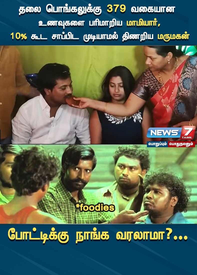 தலை பொங்கலை கொண்டாடிய புது தம்பதிக்கு 379 வகையான உணவுகளை பரிமாறிய மாமியார் தடபுடலாக விருந்து வைத்துள்ளார். அந்த உணவு வகைகளை பார்த்து கடும் அதிர்ச்சி அடைந்த மருமகன் முரளிதர், 379 வகையான உணவுகளில் 10 சதவீதத்தை கூட சாப்பிடவில்லை என கூறப்படுகிறது.