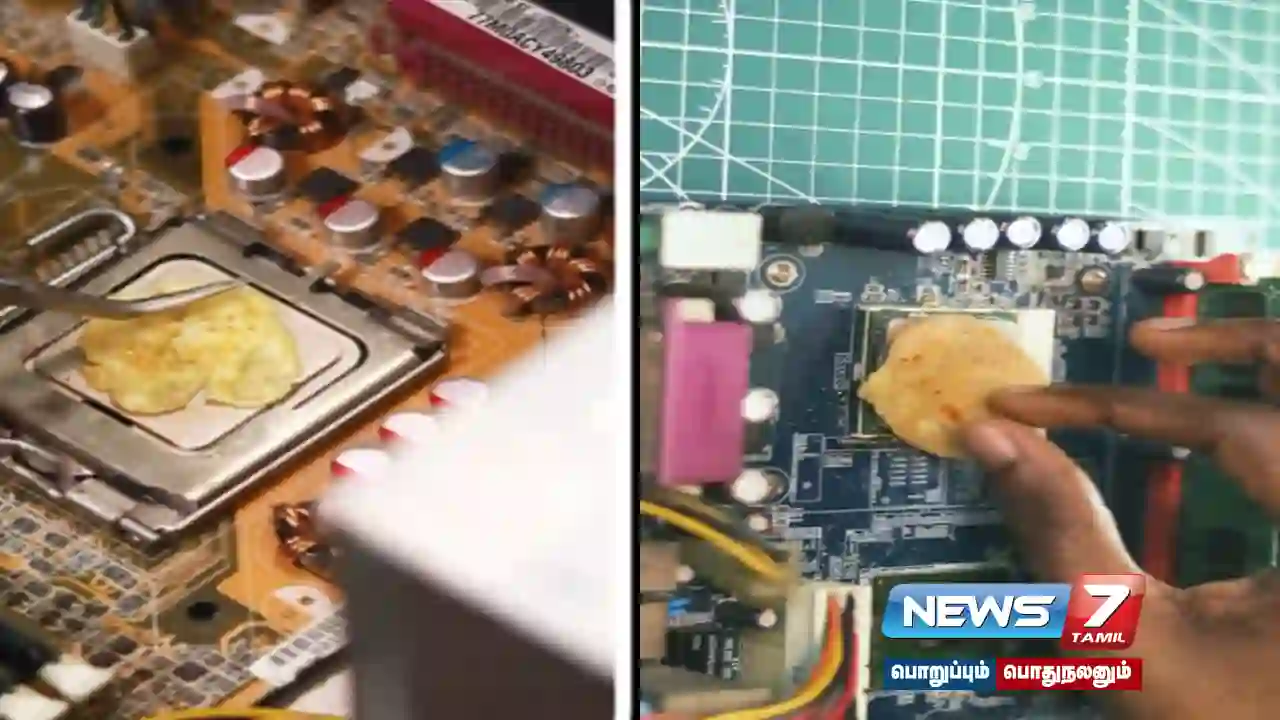 சமூக வலைதளங்களில் பல வீடியோக்கள் பார்க்க விசித்திரமாவும், நம்ப முடியாததாகவும் இருக்கும். நாம் பல வீடியோக்களில் பல முறைகளில் உணவு தயாரிப்பதை பார்த்துள்ளோம். வெயில் காலங்களில் இருசக்கர வாகனத்தின் சீட்டில் தோசை சுடுவது போன்ற வீடியோக்களை பார்த்துள்ளோம். அந்த வகையில் தற்போது சமூக வலைதளங்களில் ஒரு வீடியோ பரவி வருகிறது. ஐ.டி. ஊழியர் ஒருவர் கணினியின் சிபியூ பகுதியில் ஆம்லேட் மற்றும் ஆலூ பரோட்டா செய்யும் வீடியோதான் அது. சிரஞ்சியின் மூலம் முட்டையை இடுவது, பரோட்டா மாவை சிறிதாக வைத்து பொன்னிறாமாக எடுப்பது போன்ற காட்சிகள் இடம் பெற்றுள்ளன.