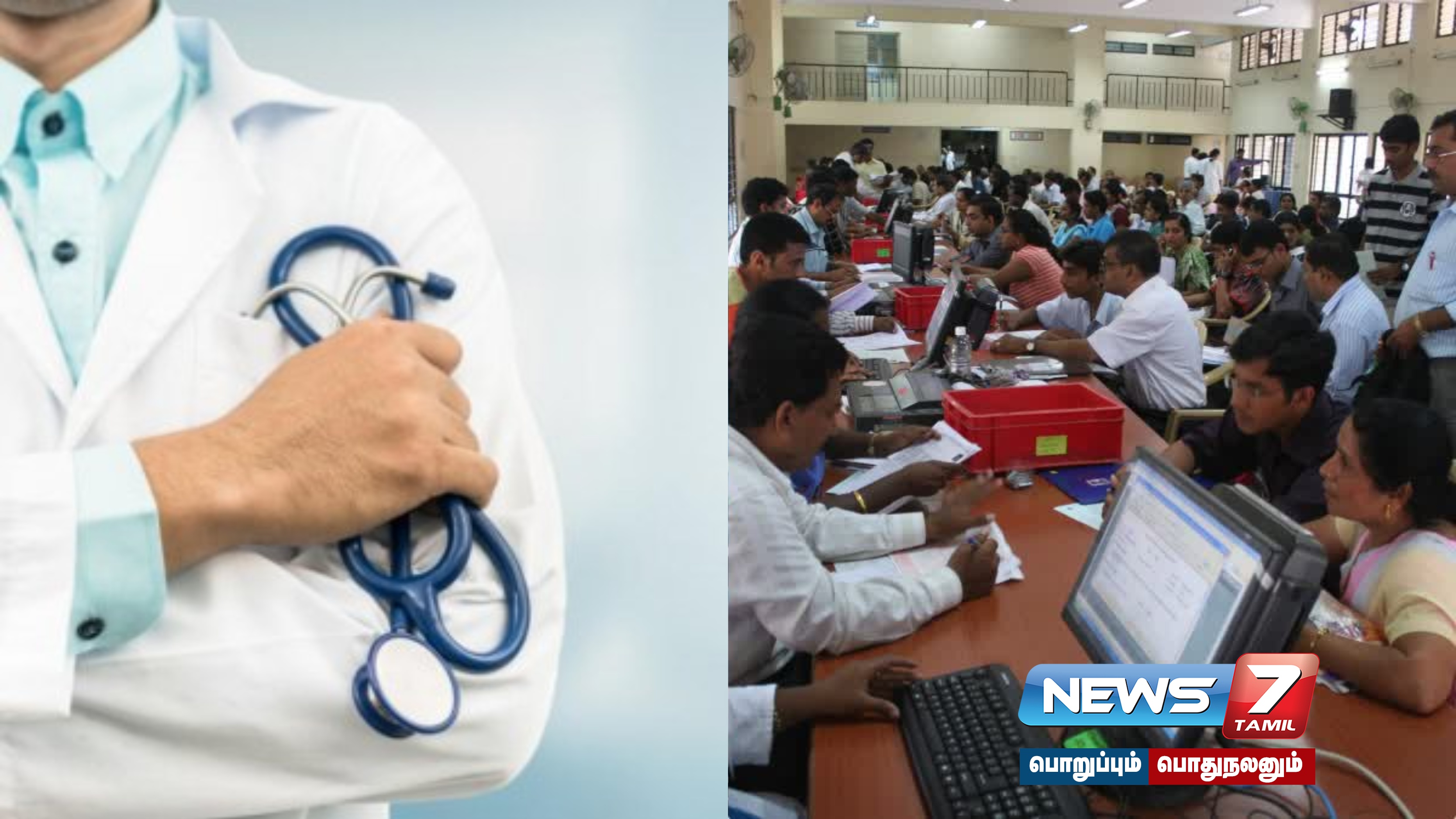 தமிழ்நாட்டில் அரசு, தனியார் மருத்துவ கல்லுாரிகளில் உள்ள அரசு மற்றும் நிர்வாக ஒதுக்கீட்டு எம்பிபிஎஸ், பிடிஎஸ் இடங்களுக்கு 2023-24-ம் கல்வி ஆண்டு மாணவர் சேர்க்கைக்கான பொதுப்பிரிவு கலந்தாய்வு சுகாதாரத் துறையின் www.tnhealth.tn.gov.in மற்றும் www.tnmedicalselection.org ஆகிய இணையதளங்களில் ஆன்லைனில் நேற்று முன்தினம் தொடங்கியது. அரசு மற்றும் நிர்வாக ஒதுக்கீட்டு இடங்களுக்கு, அந்தந்த தரவரிசை பட்டியலில் இடம்பெற்றவர்கள் கலந்தாய்வில் பங்கேற்று வருகின்றனர்.