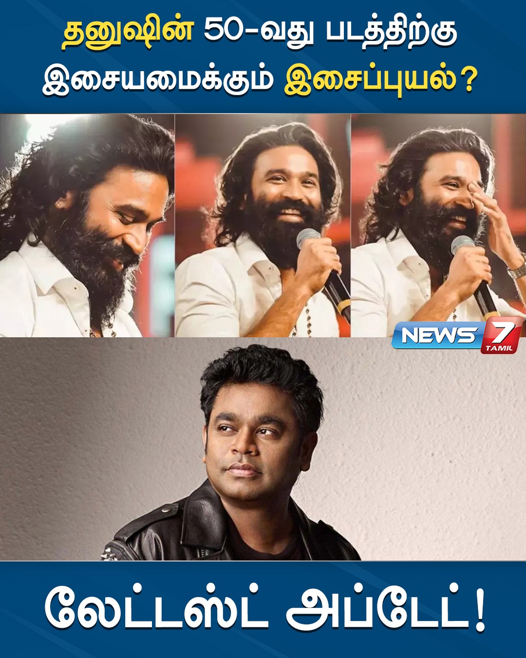 தனுஷ் இயக்கத்தில் உருவாகவுள்ள அவரின் 50-வது படத்திற்கு இசையமைக்க இசைப்புயல் ஏஆர் ரகுமான் ஒப்பந்தமாகியுள்ளதாகத் தகவல் வெளியாகியுள்ளது.