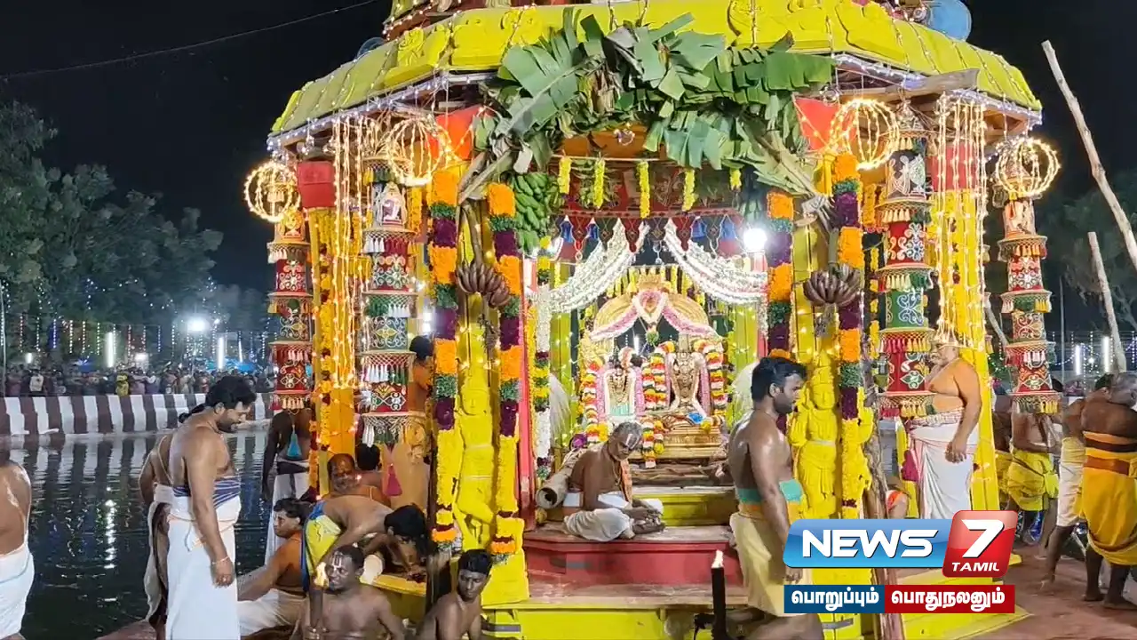 அதனைத் தொடர்ந்து தீர்த்த, ஜடாரி, பிரசாத விநியோகம் நடந்தது. பின் இரவில் வானமாமலை பெருமாள், ஸ்ரீவரமங்கை தாயார் கோயிலிலிருந்து அலங்கரிக்கப்பட்ட வாகனத்தில் எழுந்தருளி தெப்ப உற்சவத்திற்கு புறப்பட்டனர். தொடர்ந்து வானமாமலை பெருமாள், ஸ்ரீவரமங்கை தாயார் விஷேச அலங்காரத்தில் தெப்பத்தில் எழுந்தருளி 12 முறை வலம் வந்தனர். விழாவை முன்னிட்டு தெப்பம் வண்ண மின் விளக்குகளால் அலங்கரிக்கப்பட்டு ஜொலித்தது.