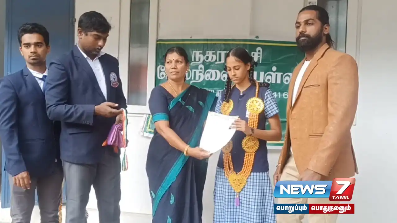 அதனை தொடர்ந்து, தமிழ்நாட்டை சேர்ந்த மாணவி சஸ்மிதா இரண்டாவது பரிசாக வெண்கல பதக்கம் பெற்று நாட்டிற்கு பெருமை சேர்த்துள்ளார். இதனையடுத்து, இன்று பள்ளி வந்த மாணவி சஸ்மிதாவை பள்ளி தலைமை ஆசிரியர் ராஜேஸ்வரி மாலை அணிவித்து மாணவிக்கு வாழ்த்துகளை தெரிவித்தார்.