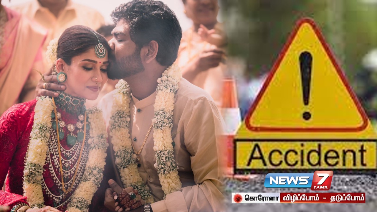 நடிகை நயன்தாரா விக்னேஷ் சிவன் திருமணம் நடந்த தனியார் நட்சத்திர விடுதியின் முன்பு அடுத்தடுத்து நடந்த மூன்று விபத்தால் அந்த பகுதியில் பரபரப்பு ஏற்பட்டது.