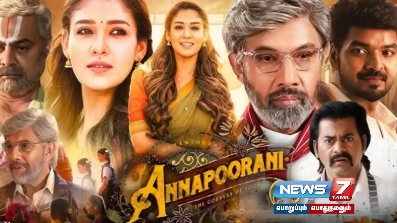 நடிகை நயன்தாராவின் 75-வது படமாக உருவான படம் அன்னபூரணி. படத்தை அறிமுக இயக்குநர் நிலேஷ் கிருஷ்ணா இயக்கி இருந்தார். டிரைடெண்ட் ஆர்ட்ஸ் ரவிந்திரன் தயாரிக்க படத்திற்கு தமன் இசையமைத்தார். இந்த படத்தில் ஜெய், சத்யராஜ், கிங்ஸ்லி, சுரேஷ் சக்கரவர்த்தி உள்ளிட்டோர் முக்கிய கதாபாத்திரத்தில் நடித்தனர். படத்தில் செஃபாக நடிகை நயன்தாரா நடித்துள்ளார்.