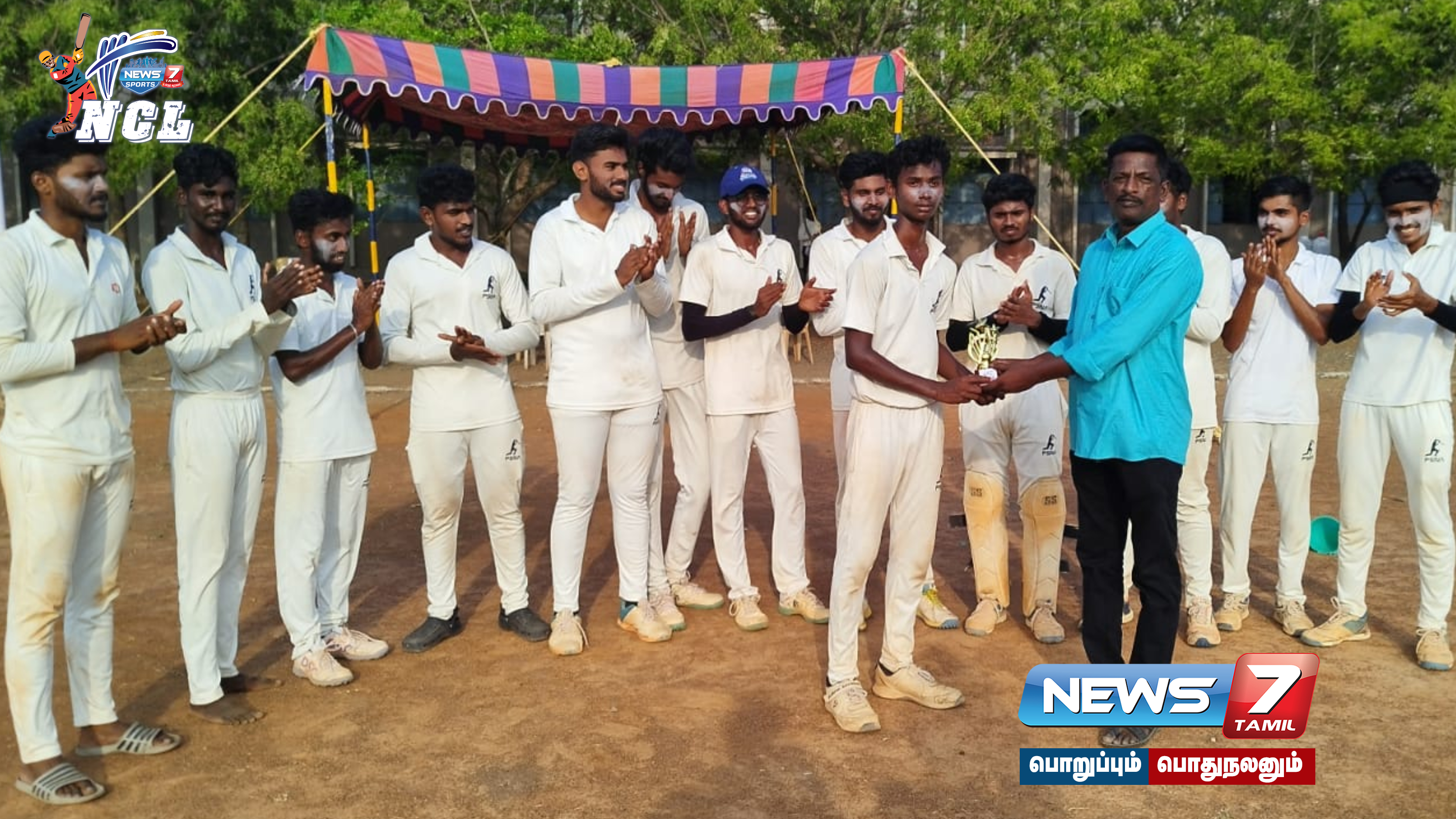 வழங்கி பாராட்டினார். தொடர்ந்து இந்த ஆட்டநாயகனுக்கான விருதை தனது தந்தைக்கு பரிசளிப்பதாகவும், கிராமப்புற மாணவர்களுக்கான நியூஸ் 7 தமிழ் நடத்தும் இந்த கிரிக்கெட் போட்டிக்கு பாராட்டை தெரிவிப்பதாக ஆட்டநாயகன் ஆனந்த் பேட்டிளித்தார்.