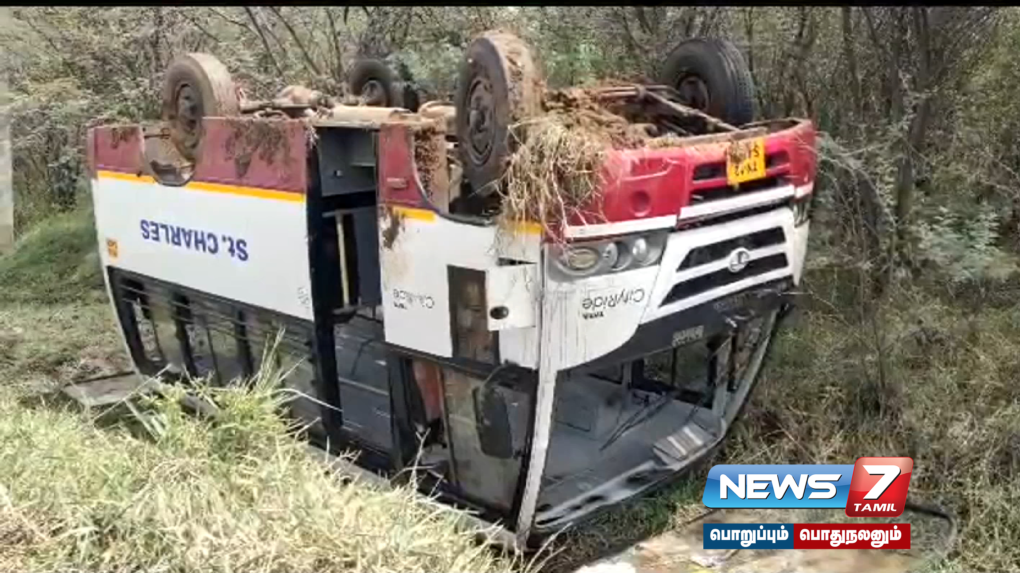 அந்த வகையில், இன்று காலையில் மாணவர்களை ஏற்றிவந்த வேன், சர்வநேந்தல் அருகே வந்த போது எதிர்பாராத விதமாக அங்கிருந்த கண்மாயில் கவிழ்ந்து விபத்துக்குள்ளானது.