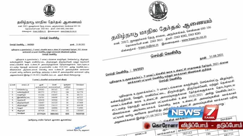 தமிழ்நாட்டில் காஞ்சிபுரம், செங்கல்பட்டு, நெல்லை, தென்காசி, கள்ளக்குறிச்சி, விழுப்புரம், ராணிப்பேட்டை, வேலூர் மற்றும் திருப்பத்தூர் ஆகிய 9 மாவட்டங்கள் தான் உள்ளாட்சித் தேர்தல் நடத்தப்படாத மாவட்டங்களாக உள்ளன. இவற்றில் பெரும்பாலானவை தமிழ்நாட்டின் வட மாவட்டங்களாக உள்ளது. இந்த மாவட்டங்களில் உள்ள வாக்காளர்களின் பட்டியலைத் தேர்தல் ஆணையம் கடந்த ஆகஸ்ட் 31ம் தேதி வெளியிட்டது. அதன்படி மொத்த வாக்காளர்களின் எண்ணிக்கை 76,59,720 ஆக உள்ளது. இந்த மொத்த எண்ணிக்கையில் 37,77,524 ஆண் வாக்காளர்களும் 38,81,361 பெண் வாக்காளர்களும் அடங்குவர். இதில் அதிகபட்சமாக விழுப்புரத்தில் 13,83,687 வாக்காளர்களும், குறைந்த அளவாகத் திருப்பத்தூரில் 6,64,108 வாக்காளர்களும் உள்ளனர் என்பது குறிப்பிடத்தக்கது.
