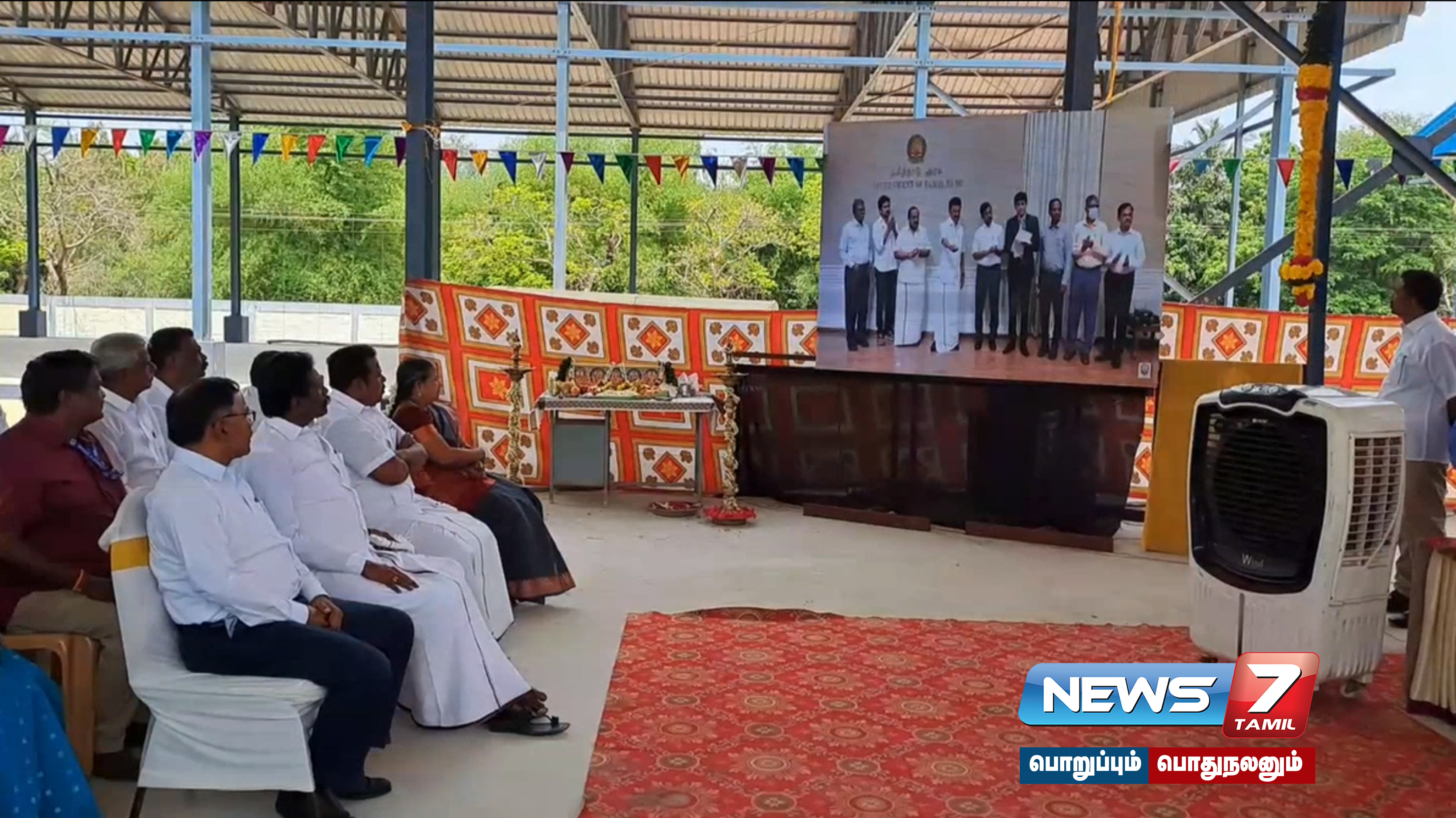 சீர்காழி அடுத்த எடமணலில் 9,000 மெட்ரிக் டன் கொள்ளளவு கொண்ட நெல் சேமிப்பு கிடங்குகளை தமிழ்நாடு முதல்வர் மு.க.ஸ்டாலின் காணொளி காட்சி வாயிலாக இன்று திறந்து வைத்தார்.