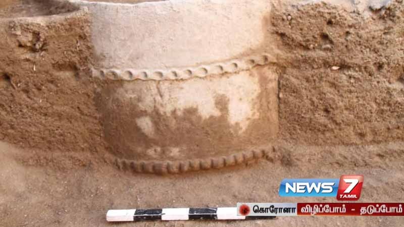 கீழடி 7ம் கட்ட அகழ்வாராய்ச்சியில் சுடு மண்ணாலான தொட்டி கண்டறியபட்டுள்ளது.