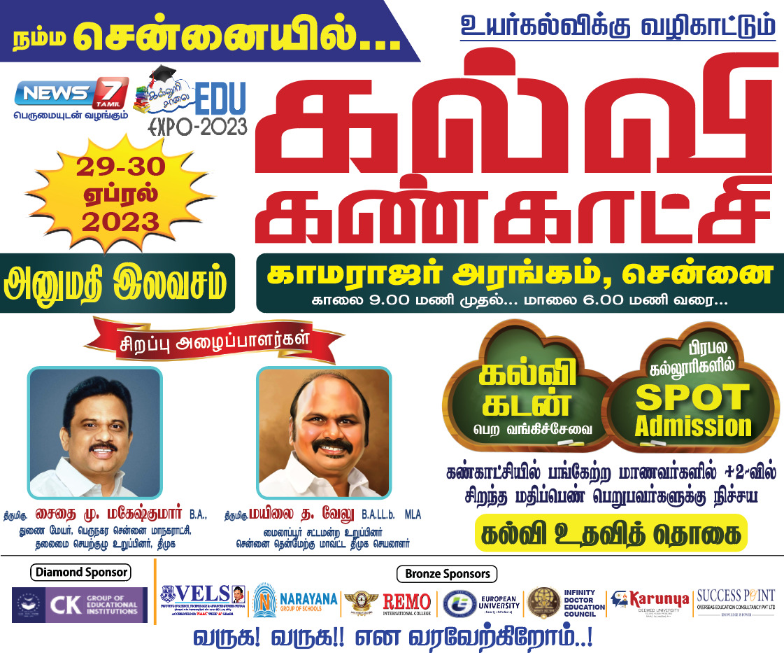 நியூஸ் 7 தமிழ் சார்பில் சேலம் மற்றும் சென்னையில் இன்றும் நாளையும் பிரமாண்ட கல்வி கண்காட்சி நடைபெற உள்ளது.