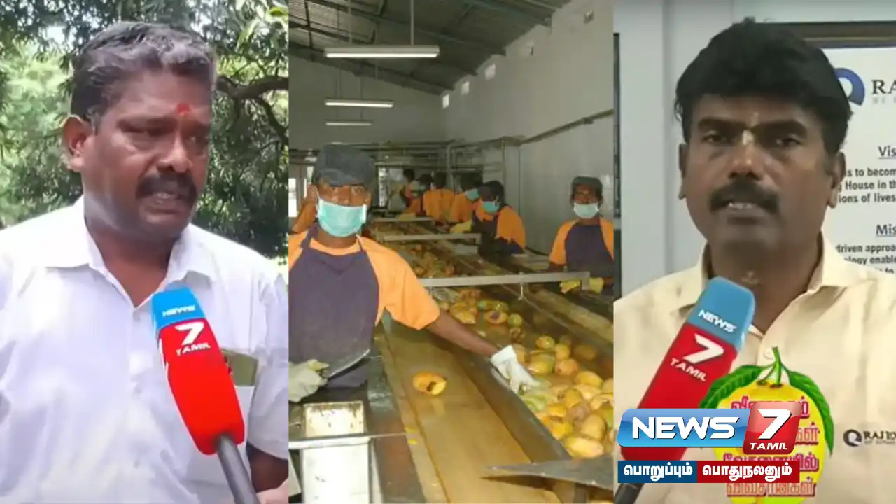 மாம்பழம் விளைச்சல் அமோகமாக இருந்தும் போதிய விலை கிடைக்காததால், விவசாயிகள், மாம்பழங்களை சாலையோரம் கொட்டும் சூழ்நிலைக்கு தள்ளப்பட்டனர். மாம்பழ விவசாயிகளின் வேதனையை ‘வீணாகும் மாம்பழங்கள்.., வேதனையில் விவசாயிகள்’ எனும் தலைப்பில் நியூஸ்7 தமிழ் தொலைக்காட்சி செய்தி தொகுப்பாக வெளியிட்டது. இந்த நிலையில், நியூஸ்7 தமிழ் செய்தி எதிரொலியாக தமிழ்நாட்டில் மாம்பழக்கூழ் உற்பத்தி செய்யும் ஆலைகள் விவசாயிகளிடமிருந்து மாங்கனிகளை உடனடியாகக் கொள்முதல் செய்ய வேளாண்மை உற்பத்தி ஆணையர் மற்றும் அரசு செயலாளர் வலியுறுத்தியுள்ளார்.