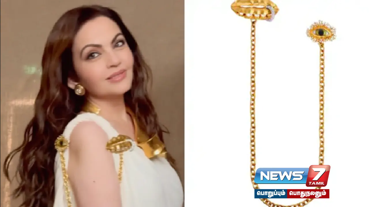 அந்த வீடியோவில், நீடா அம்பானி ஒரு வெள்ளை நிற உடையை அணிந்திருப்பதைக் காணலாம். இது பண்டைய ரோமானியர்கள் அணிந்திருந்த பிரபலமாக உடை என்று கூறப்படுகிறது. அவர் ஷியாபரெல்லி ப்ரூச் என்கிற அணிகலனை அணிந்திருந்தார். அதில் ஒரு பக்கம் வாய் மற்றும் மறுபுறம் கண் உள்ளது. இதன் விலை ரூ.2 லட்சத்திற்கும் அதிகம் என்று சொல்லப்படுகிறது. அவர் அதே பிராண்டில் இருந்து Collier Ruban Spirale என்ற நெக்லஸை அணிந்திருந்தார். இதன் மதிப்பு ரூ.6 லட்சத்திற்கும் அதிகமாம்.