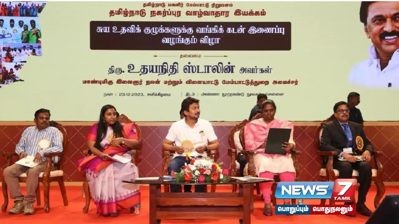 உதவிக் குழுக்களுக்கு வங்கி கடன் இணைப்பு வழங்கும் நிகழ்ச்சி நடைபெற்றது. ஊரக வளர்ச்சி மற்றும் ஊராட்சித்துறை இயக்கம் சார்பாக நடைபெற்ற நிகழ்ச்சியில் தமிழ்நாடு இளைஞர் நலன் மற்றும் விளையாட்டு மேம்பாட்டு துறை அமைச்சர் உதயநிதி ஸ்டாலின் தலைமையேற்று சுய உதவிக் குழுக்களுக்கு வங்கி கடன் இணைப்புகளை வழங்கினார்.