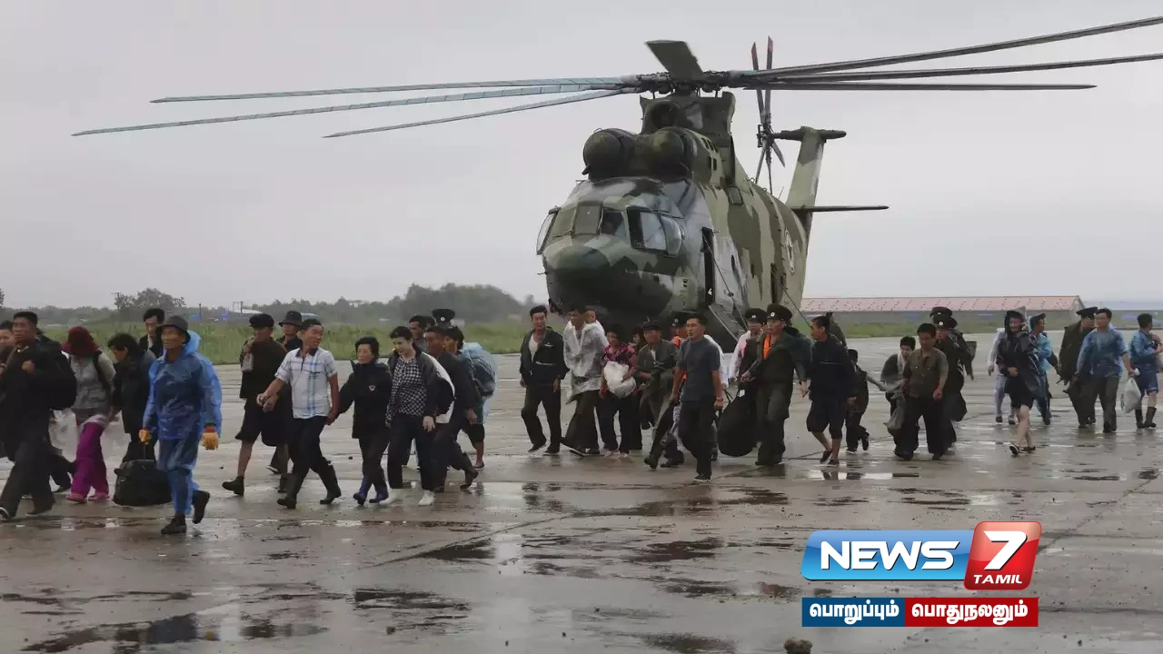 வடகொரியாவில் கனமழை காரணமாக குடியிருப்பு பகுதிகளை வெள்ளம் சூழ்ந்த நிலையில், அப்பகுதிகளில் இருந்து சுமார் 5,000க்கும் மேற்பட்டோர் பத்திரமாக மீட்கப்பட்டுள்ளதாக தெரிவிக்கப்பட்டுள்ளது.