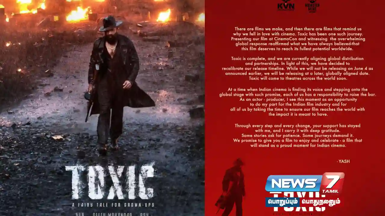 ‘டாக்சிக்’ படம் நிறைவடைந்துவிட்டது, தற்போது நாங்கள் உலகளாவிய விநியோகம் மற்றும் கூட்டாண்மைகளை ஒருங்கிணைத்து வருகிறோம். இதன் காரணமாக, எங்கள் வெளியீட்டு கால அட்டவணையை மறுசீரமைக்க முடிவு செய்துள்ளோம். முன்னதாக அறிவித்தபடி ஜூன் மாதம் வெளியாகாதது என்றாலும், பின்னர் உலகளவில் ஒருங்கிணைக்கப்பட்ட ஒரு தேதியில் வெளியிடப்படும். ‘டாக்சிக்’ விரைவில் உலகெங்கிலும் உள்ள திரையரங்குகளுக்கு வரும்.
