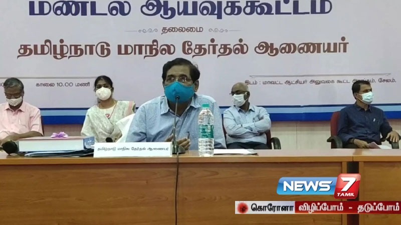 இந்நிலையில், மாநகராட்சி, நகராட்சி பேரூராட்சிகான நகர்ப்புற தேர்தலை விரைந்து நடத்த மாநில தேர்தல் ஆணையம் தீவிரம் காட்டி வருகிறது. இதையடுத்து சேலம், நாமக்கல், தருமபுரி, கிருஷ்ணகிரி, கரூர், திருப்பத்தூர், கள்ளக்குறிச்சி ஆகிய 7 மாவட்ட ஆட்சியர்கள், காவல்துறை உயர் அதிகாரிகள் மற்றும் தேர்தல் அலுவலர்களுடன் மாநில தேர்தல் ஆணையர் பழனிக்குமார் சேலத்தில் ஆலோசனை நடத்தினார். சேலம் ஆட்சியர் அலுவலகத்தில் நடைபெற்ற கூட்டத்தில் நகர்ப்புற உள்ளாட்சித் தேர்தலை நடத்த அனைத்து துறை அதிகாரிகளும் தயாராக இருக்க வேண்டும் என அறிவுறுத்தினார். மேலும், தேர்தல் பணிகளை சட்டத்திற்குட்பட்டு செய்தால் எவ்வித பிரச்னையும் வராது என அனைத்துத் துறை அதிகாரிகளுக்கும் மாநில தேர்தல் ஆணையர் பழனிக்குமார் அறிவுரை வழங்கினார்.
