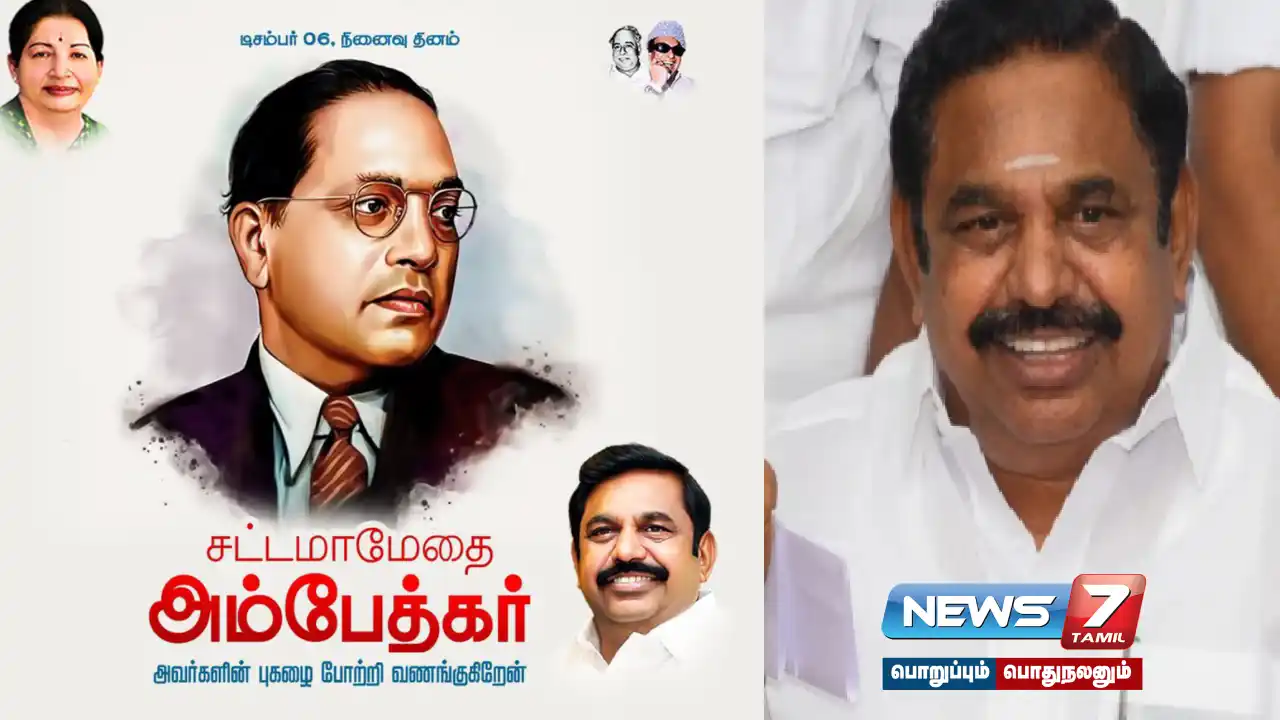 சட்ட மேதை அண்ணல் அம்பேத்கரின் நினைவு தினம் இன்று நாடு முழுவதும் அனுசரிக்கப்படுகிறது. இதனை முன்னிட்டு நாடு முழுவதும் பல்வேறு இடங்களிலும் அவரது திருவுருவ சிலைகளுக்கு மாலை அணிவித்து மரியாதை செலுத்தப்பட்டு வருகிறது. இந்த நிலையில் சட்டமேதை அண்ணல் அம்பேத்கரின் நினைவு தினத்தையொட்டி அதிமுக பொதுச்செயலாளர் எடப்பாடி பழனிசாமி எக்ஸ் தலத்தில் பதிவு ஒன்றை வெளியிட்டுள்ளார்.