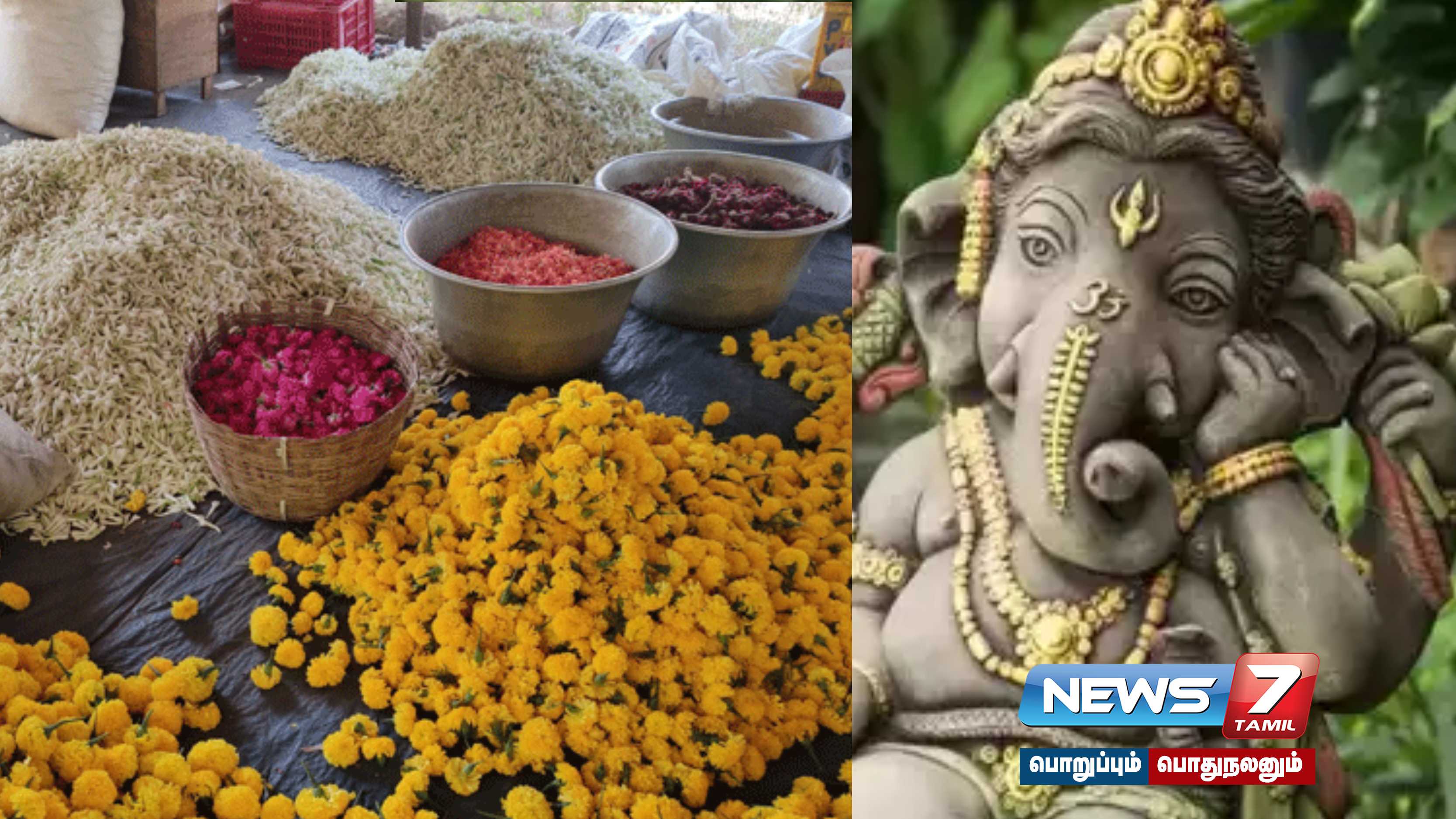 விநாயகர் சதுர்த்தி பண்டிகையான இன்று பூக்களின் விலை இரண்டு மடங்காக உயர்ந்த நிலையில், ஒரு கிலோ மல்லிகைப்பூ ஆயிரத்து ஐநூறு ரூபாய்க்கு விற்பனையானது.