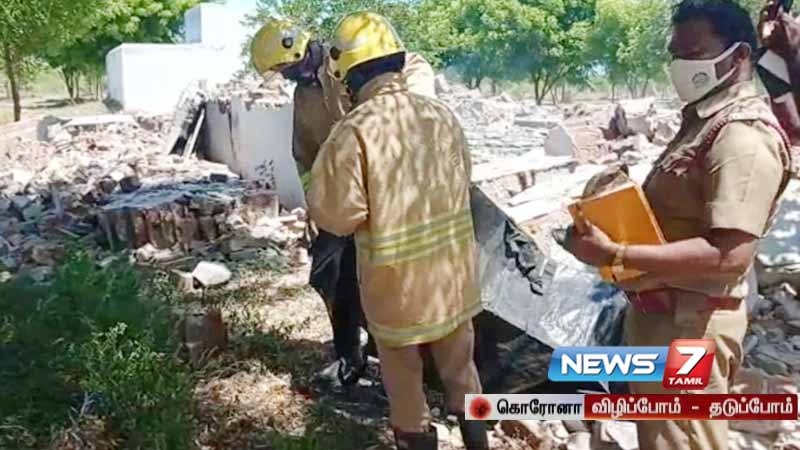 அப்போது திடீரென வெடிவிபத்து ஏற்பட்டதால் ஆனந்தராஜ் உடல் சிதறிய நிலையில் தூக்கி வீசப்பட்டார். மரத்தில் தொங்கிய ஆனந்தராஜின் உடலை மீட்ட காவல்துறையினர் பிரேத பரிசோதனைக்கு அனுப்பி வைத்தனர். மேலும் வெடிவிபத்து ஏற்பட்ட அறை முற்றிலுமாகத் தரைமட்டமானது.