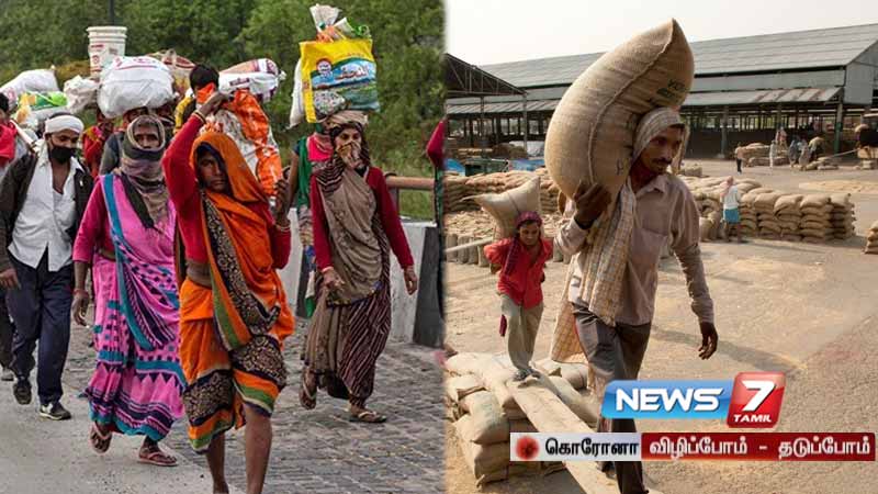 அதேபோல் தொண்டு நிறுவனங்கள் மூலமாகப் புலம் பெயர் தொழிலாளர்களுக்கு உணவுகள் வழங்கல் 421 மெட்ரிக் டன் உணவு தானியங்கள் வழங்கப்பட்டுள்ளது. ‘பிரதம மந்திரி கரிப் கல்யாண் அன்ன யோஜனா திட்டம்’ மூலம் வரும் நவம்பர் மாதம் வரை புலம் பெயர் தொழிலாளர்களுக்கு இலவசமாக உணவுப் பொருட்கள் வழங்க அறிவுறுத்தப்பட்டுள்ளது. இதன்மூலம் 80 கோடி பேர் பயனடைவார்கள்.
