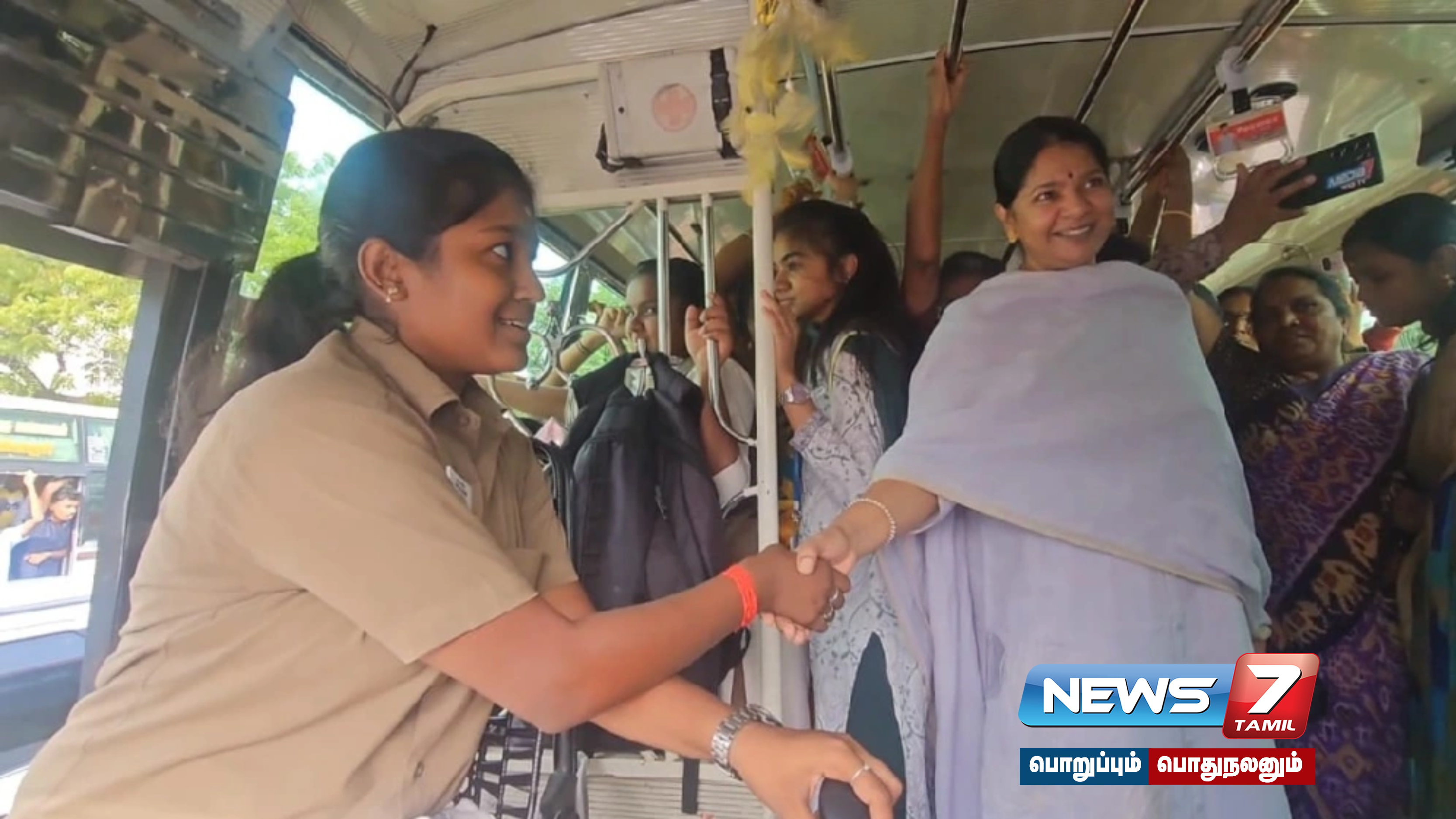 கோவையில் பெண் ஓட்டுநர் இயக்கிய பேருந்தில் திடீரென பயணம் செய்த செய்த கனிமொழி அவருக்கு இன்ப அதிர்ச்சி தந்தார்.