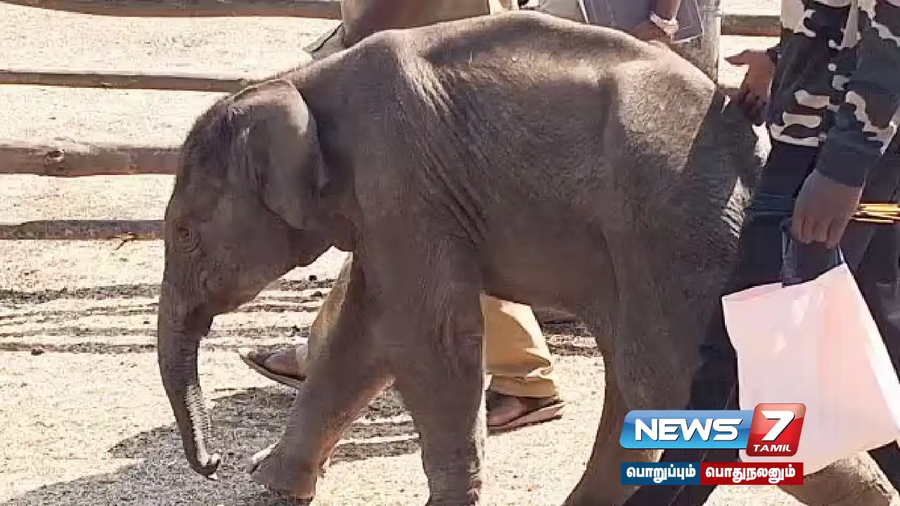 தாயை பிரிந்த 4 மாத ஆண் குட்டி யானை அதன் கூட்டத்துடன் இணையாததால் முதுமலை யானைகள் முகாமுக்கு கொண்டு செல்லப்பட்டது.