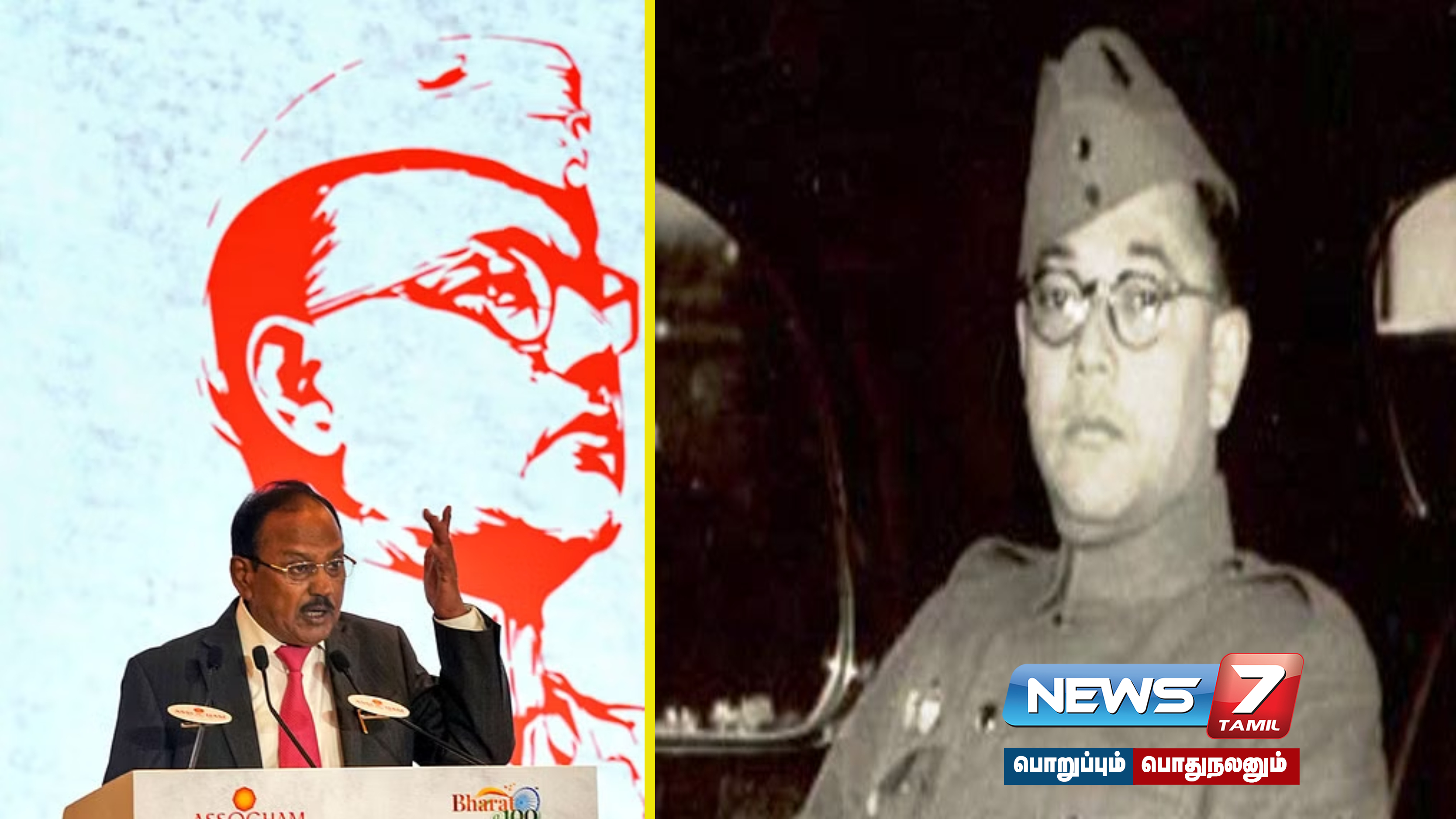 நேதாஜி சுபாஷ் சந்திர போஸின் நினைவு நாளை முன்னிட்டு டெல்லியில் கடந்த சனிக்கிழமை அன்று தொழிலகக் கூட்டமைப்பான அசோசேம் சாா்பில் கருத்தரங்கம் நடைபெற்றது. இந்த கருத்தரங்கில், தேசிய பாதுகாப்பு ஆலோசகா் அஜீத் தோவல் சிறப்பு விருந்தினராக கலந்துகொண்டு உரையாற்றினார். அப்போது பேசிய அவர் நமது இந்திய சுதந்திரம் அடைவதற்கு முன்பாக ஆங்கிலேயர்களை எதிர்த்து பல்வேறு கட்ட போராட்டங்களை சந்தித்தது. அதற்கு மகாத்மா காந்தி, நேதாஜி சுபாஷ் சந்திர போஸ் போன்று நிறைய தலைவர்கள் தங்கள் உயிரை பணயம் வைத்து போராடி இருக்கிறார்கள்.