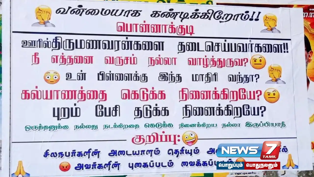 மேலும் குறிப்பு என குறிப்பிட்டு, சில நபர்களின் அடையாளம் தெரியும். அடுத்த போஸ்டரில் அவர்களின் புகைப்படம் வைக்கப்படும் எனவும் திருமணத்தை நிறுத்த நினைப்பவர்களுக்கு எச்சரிக்கையும் விடுத்துள்ளனர்.