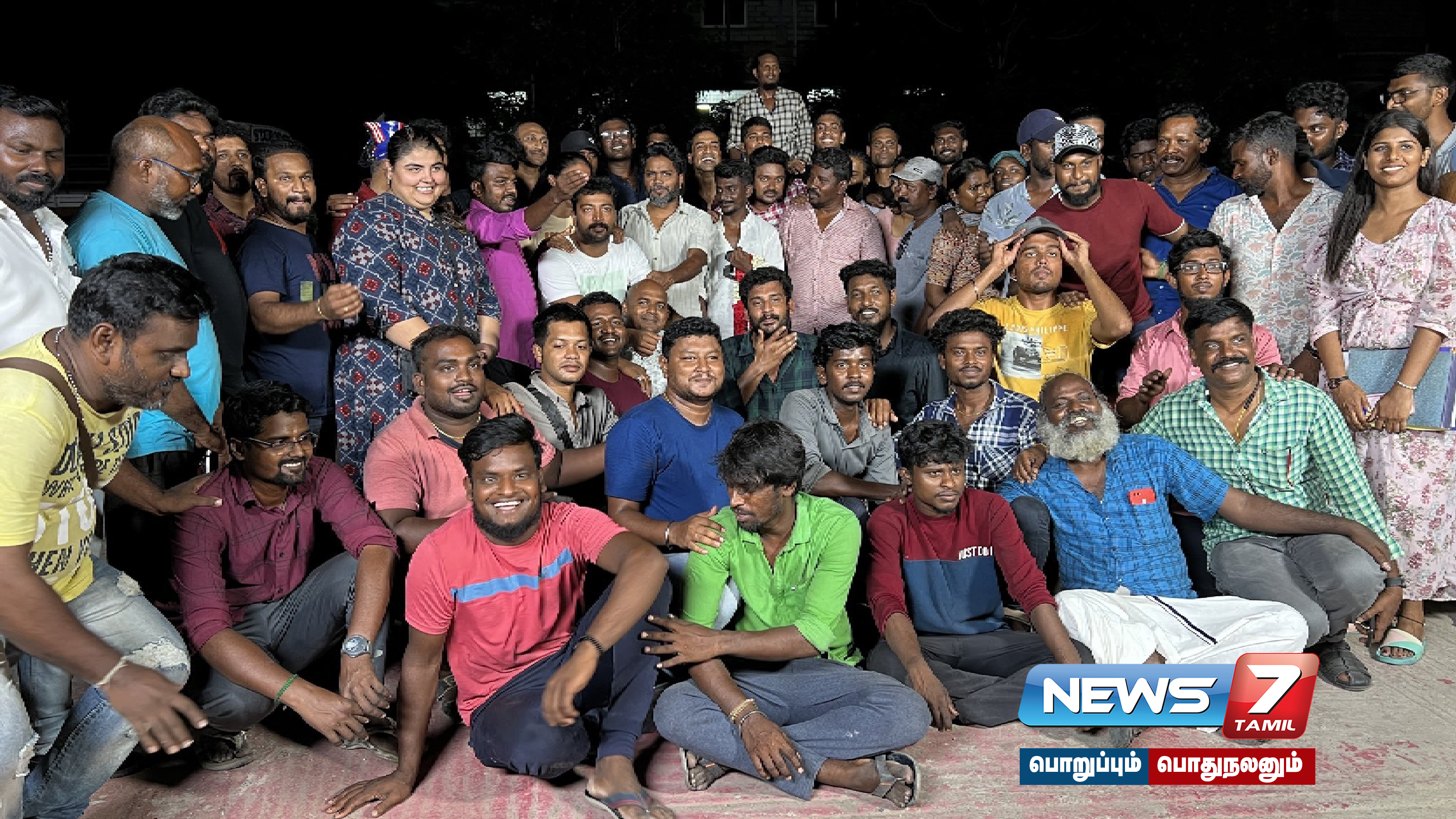 இயக்குநர் பா. ரஞ்சித் தயாரிப்பில் உருவாகிவரும் தண்டகாரண்யம் படத்தின் படப்பிடிப்பு நிறைவடைந்ததை கேக் வெட்டி படக்குழு கொண்டாடினர்.