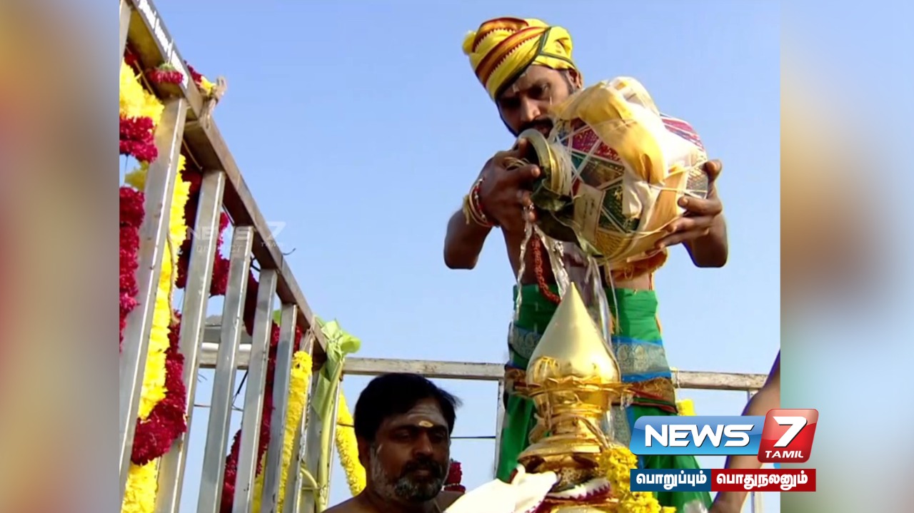 சிவாச்சாரியார்கள் புண்ணிய தீர்த்தத்தை ராஜகோபுரம் மற்றும் தங்க கோபுரம், பரிவார தெய்வங்கள் சன்னதிகள் மேல் கொண்டு சென்று கலசங்களில் ஊற்றி குடமுழுக்கு நடத்தி வைத்தனர். அதிகாலை 5 மணி முதல் சிவாச்சாரியார்கள், ஓதுவார்கள் வேத மந்திரங்கள் ஓத காலை 8:15 மணி முதல் 9:15 மணிக்குள்ளாக குடமுழுக்கு விழா நடைபெற்றது. குடமுழுக்கு விழாவை ஒட்டி ராஜகோபுரம் மற்றும் தங்க கோபுரத்திற்கு ஹெலிகாப்டர் மூலமாக மலர் தூவப்பட்டது.