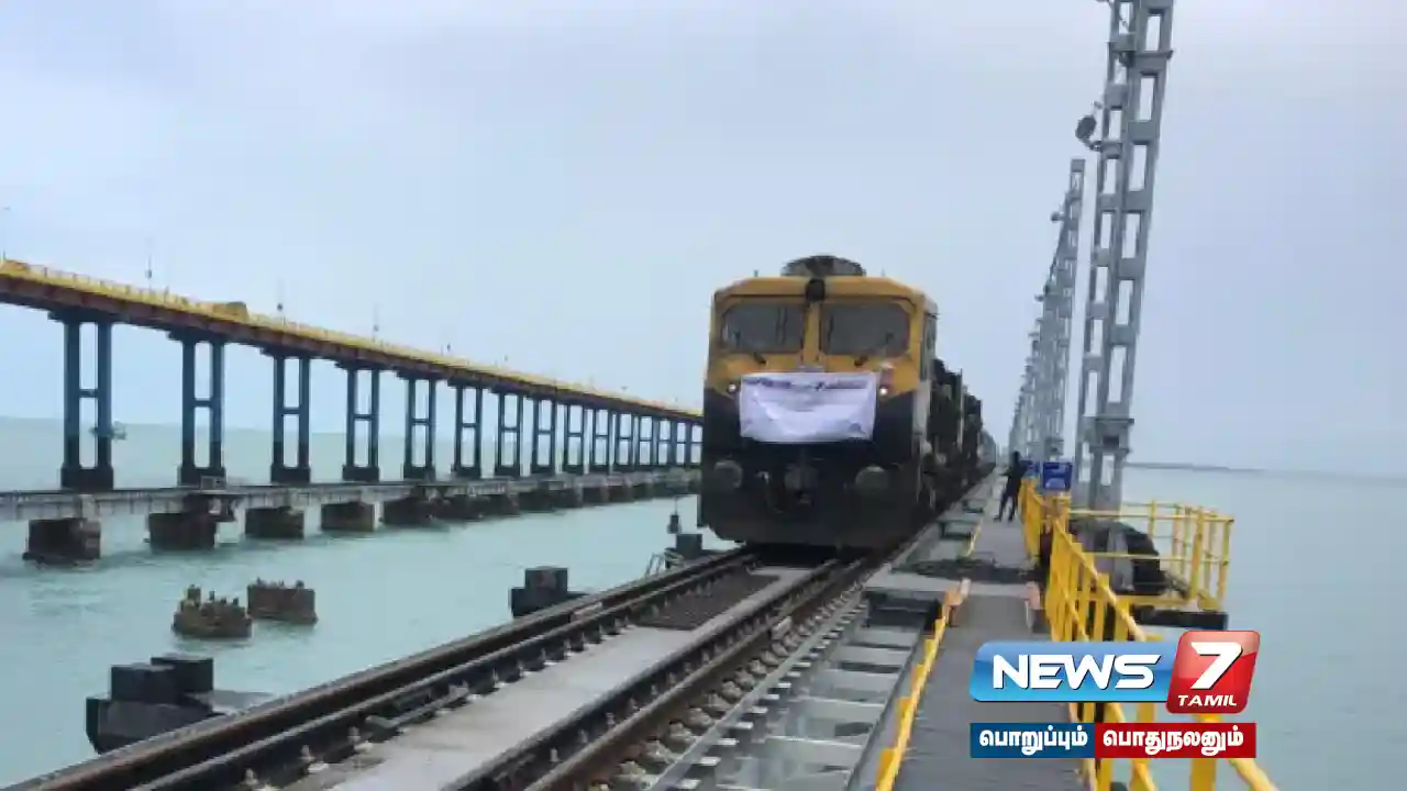 ராமநாதபுரம் மாவட்டம் பாம்பன் கடலின் நடுவே ரூ.545 கோடியில் புதிதாக ரயில் பாலம் கட்டி முடிக்கப்பட்டு உள்ளது. மண்டபம் – ராமேசுவரம் இடையே உள்ள பாம்பன் ரயில் பாலம் பழுதடைந்த நிலையில் 2022 முதல் ரயில் இயக்கம் ரத்து செய்யப்பட்டது.