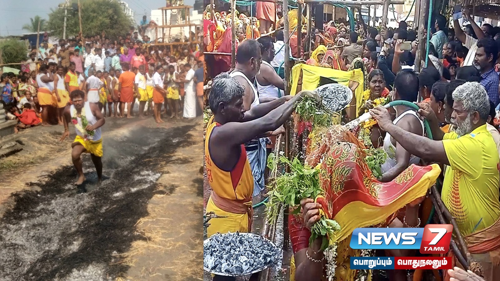 திருவிழாவின் முக்கிய நிகழ்ச்சியாகக் கருதப்படும் தீ குண்டம் இறங்குதல் நிகழ்ச்சி, மாலை 3 மணிக்குத் தொடங்கி இரவு 7 மணி வரை நடைபெற்றது. இதற்காக, கோயில் முன்பு சுமார் 62 அடி நீளமுள்ள குண்டம் அமைக்கப்பட்டது. இதில் ஆயிரத்திற்கும் மேற்பட்ட பக்தர்கள் வரிசையாக நின்று, ஒவ்வொருவராகக் குண்டத்தில் இறங்கி நேர்த்திக்கடன் செலுத்தினர்.