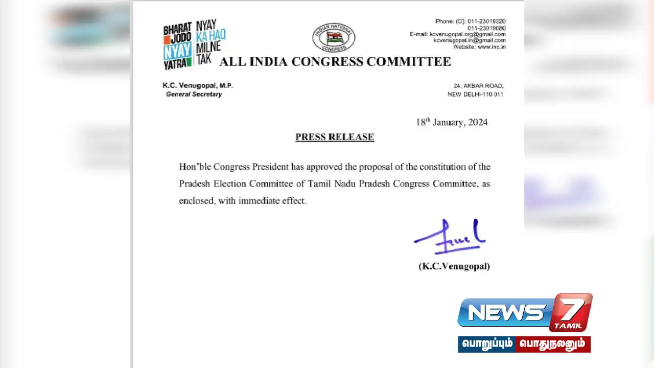 அதனைத்தொடர்ந்து, தற்போது தமிழ்நாடு காங்கிரஸ் தேர்தல் குழு அறிவிப்பு வெளியாகியுள்ளது.