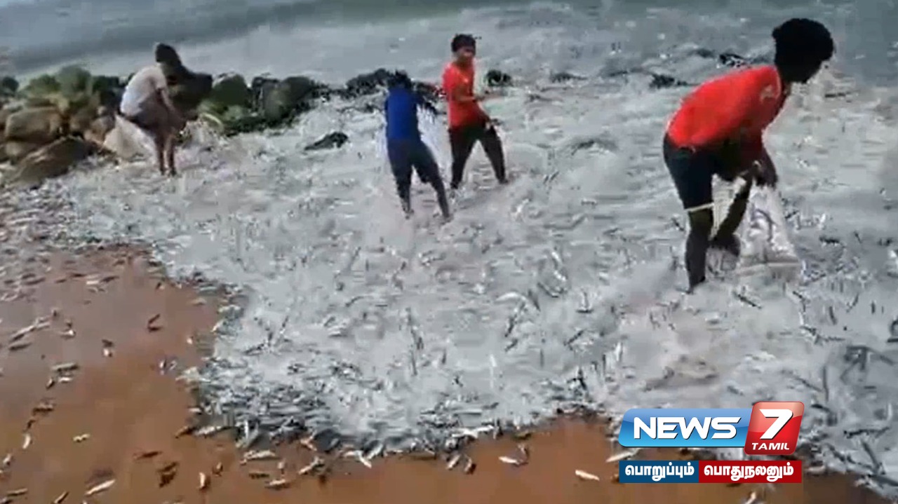 கேரள மாநிலம் திருச்சூர் கடல் பகுதியில் குவியல் குவியலாக கரை ஒதுங்கிய மீன்களை பொதுமக்கள் மகிழ்ச்சியுடன் அள்ளி சென்றனர்.